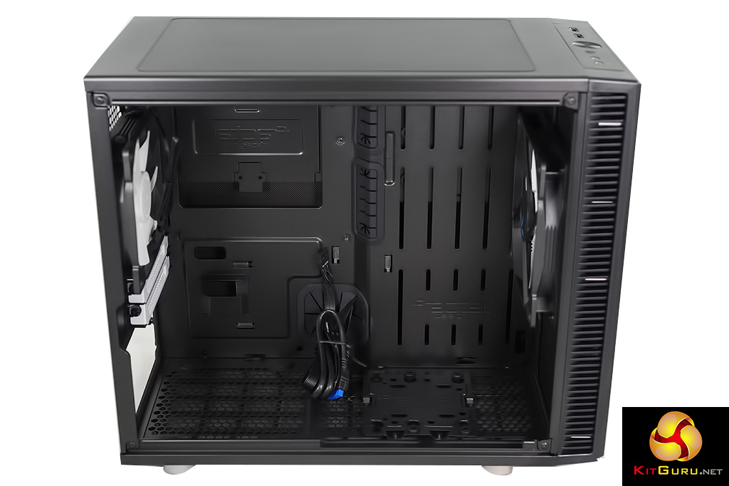 Fractal Design supplies a Dynamic Series GP-14 fan at the front of the case and a GP-12 at the rear. In most scenarios that we can imagine you will probably remove the front fan and replace it with your own choice of cooling.