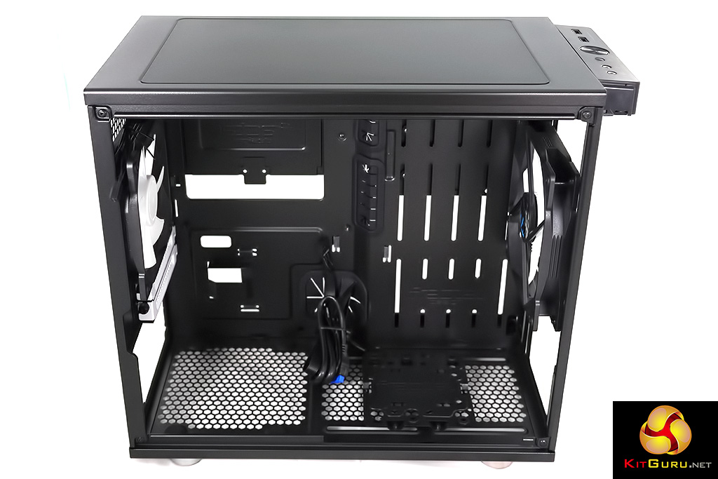 As you will see in our video above, pulling off the side panels and front panel takes a few moments and then you can remove the full length dust filters from the bottom and front and unclip the ModuVent panel at the top to lay the case bare.