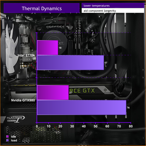 GPU temperature for our GTX 980 was 76 degrees which is exactly what we expect to see.