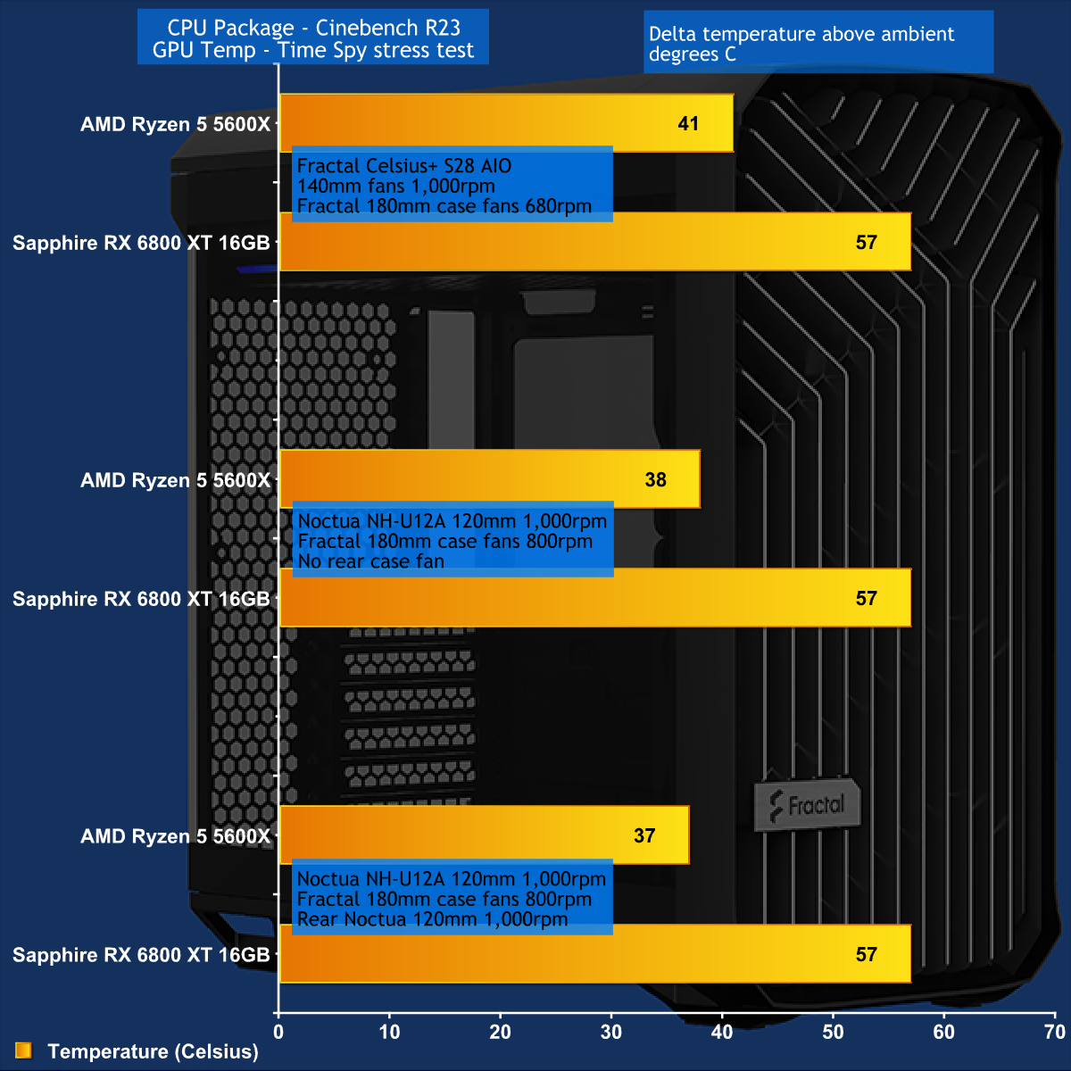 To put this case through its cooling paces we will be using a test system consisting of an AMD Ryzen 5 5600X, Sapphire RX 6800 XT 16GB and an SSD. This system allows us to produce a substantial amount of heat and effectively test the Fractal Design Torrent Compact ‘s cooling capabilities.