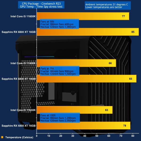 To put this case through its cooling paces we will be using a test system consisting of an Intel Core i5-11600K, Sapphire RX 6800 XT 16GB and an SSD. This system allows us to produce a substantial amount of heat and effectively test the Fractal Design Torrent Nano‘s cooling capabilities.