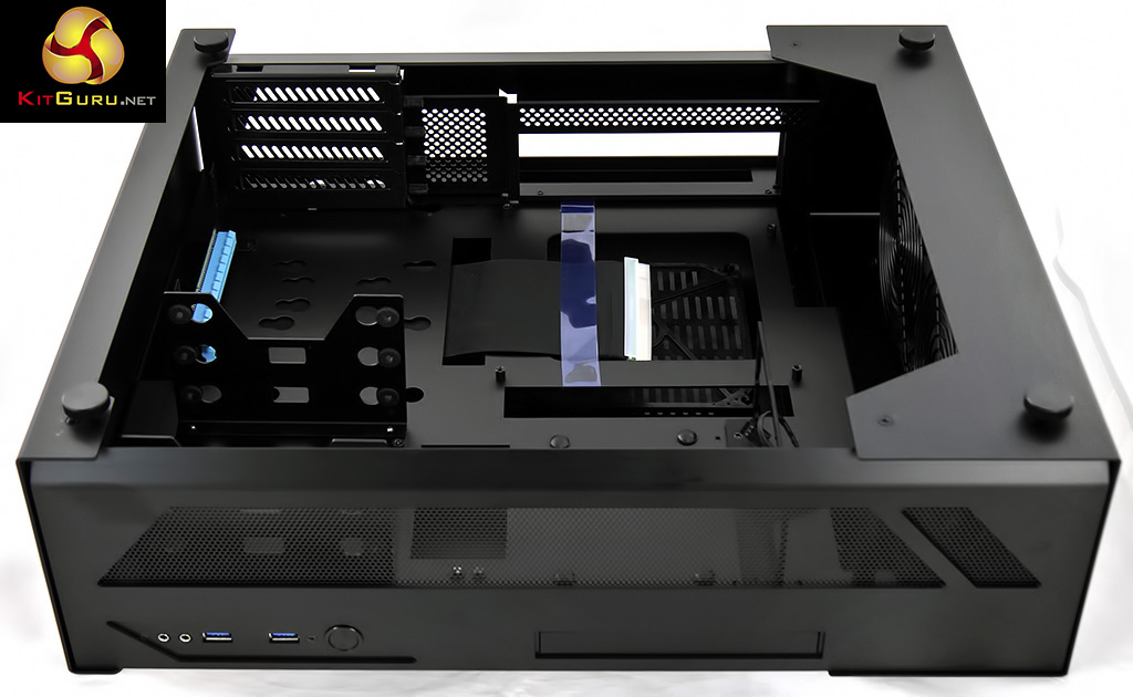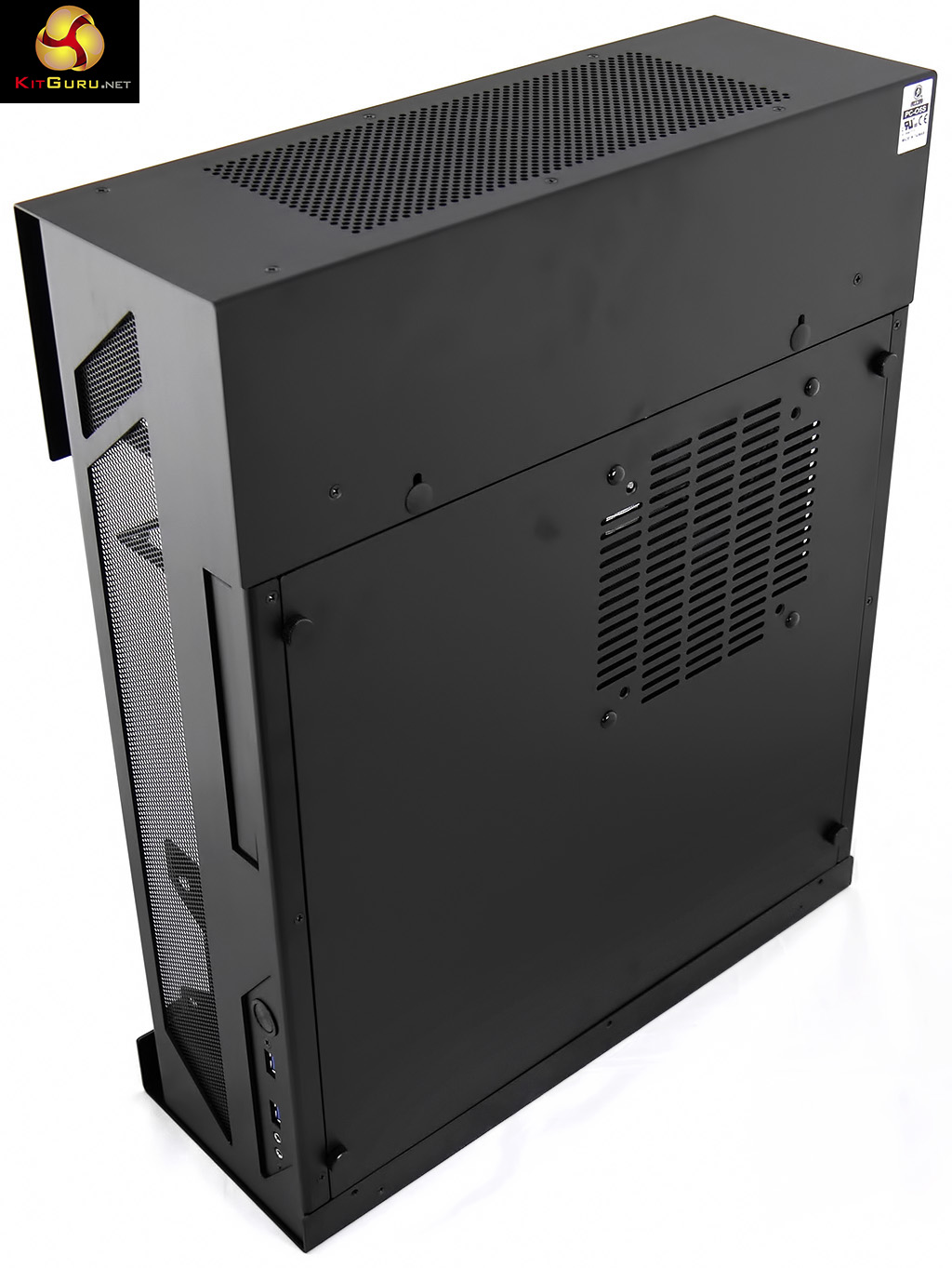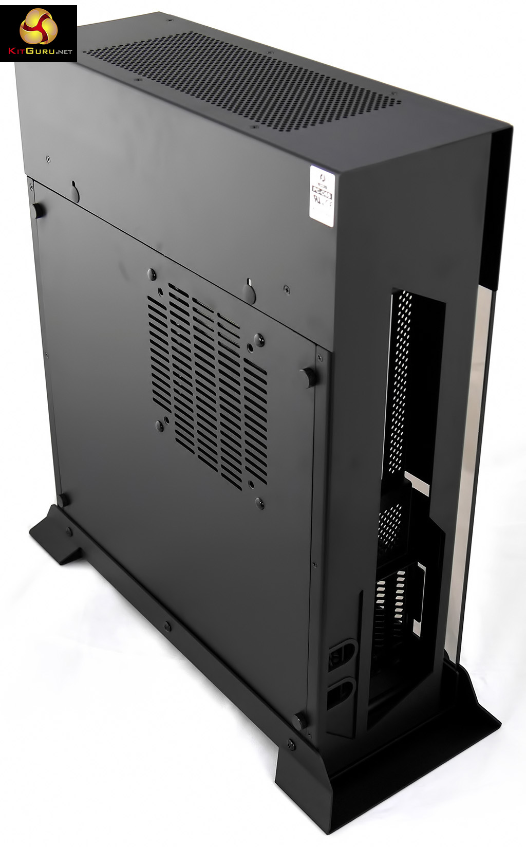 Lian Li describes the O series as a wall-mounted design (there are mounting holes in the chassis for that purpose although it seems like a curious idea), and there is an aluminium support in the package so you can stand the case on end. In fact the obvious orientation is to lay the PC-O5S flat like a piece of Hi-Fi hardware as this is how the USB 3.0 ports and slimline optical drive slot are arranged.