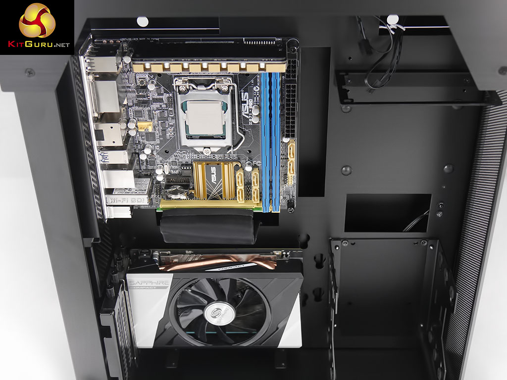 Lian Li claims that you can mount a 240mm radiator in place of the two 120mm case fans which may well be true however I failed utterly to install the water block/pump unit on the CPU. The problem is the extremely limited amount of space above the CPU and below the glass cover. There is nothing to prevent you removing the glass to leave the case open but this seems like a curious move.