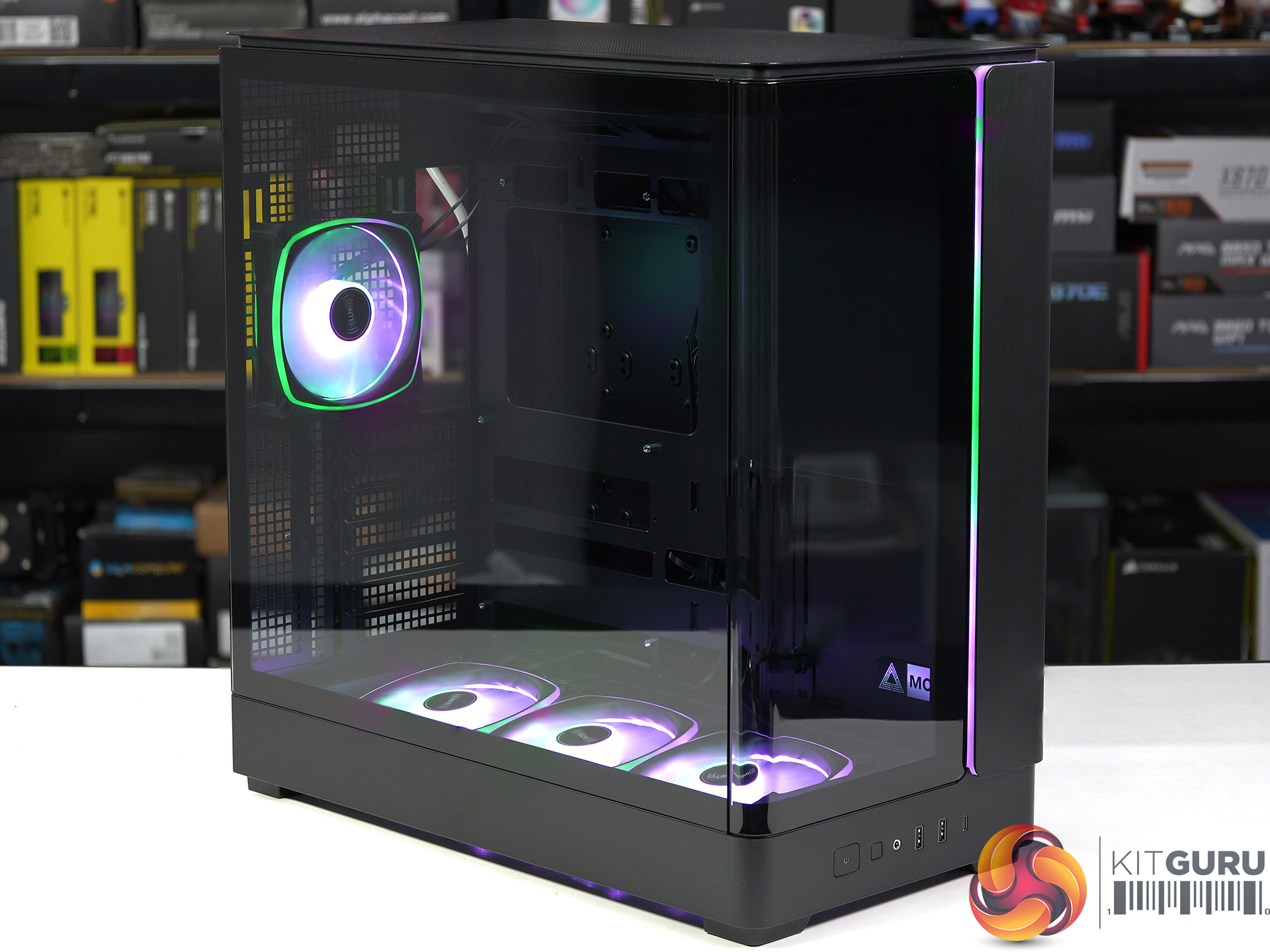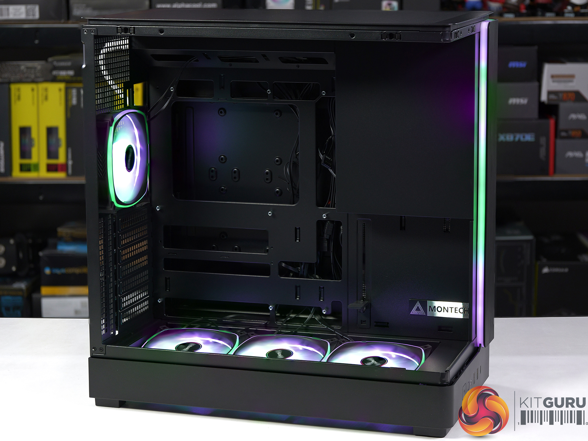 The Montech King 45 Pro is a compact ATX case that moves a few components around to open up the main chamber. This focuses our attention on the three reverse ARGB fans in the floor of the case that feed cooling air directly to your graphics card.