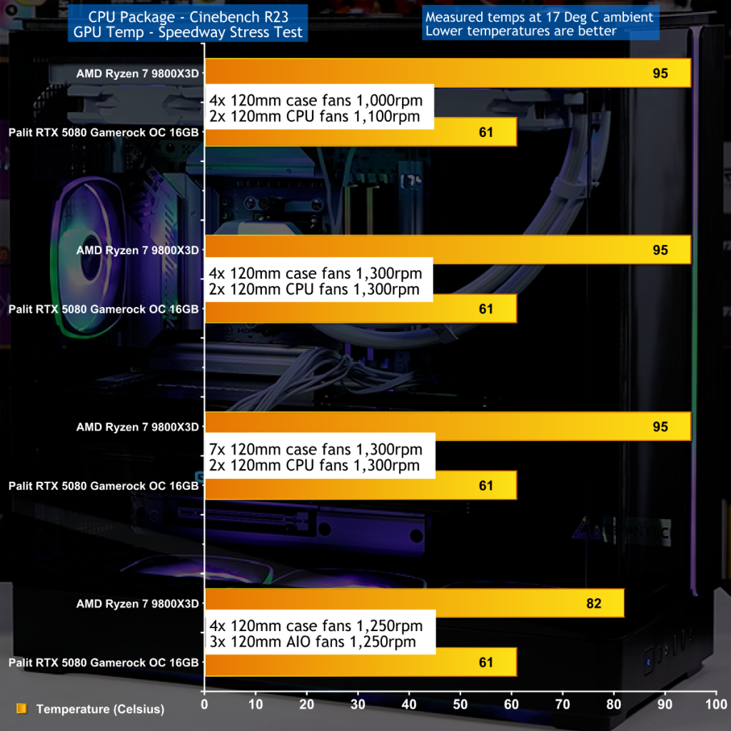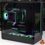 As you will see in our video we suffered during testing with an air cooler on our CPU, but switching to a 360mm AIO fixed things and gave decent cooling results. It is clear that cramming a 300W graphics card inside this compact tower case has a huge impact on the flow of cooling air to the CPU and we recommend you bear this point in mind when you build your PC.