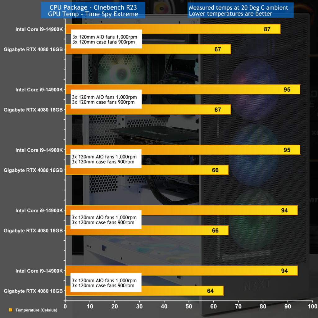 In our video you can see the steps we took by first swapping out the stock fans on the Kraken Elite 360 AIO cooler, then adding a fan in the rear of the case, followed by fans in the floor and finally a set of RGB fans in the front. These huge changes made very little difference to the temperature of the graphics card and the single largest effect was an increase in CPU temperature when we ditched the stock Kraken fans.