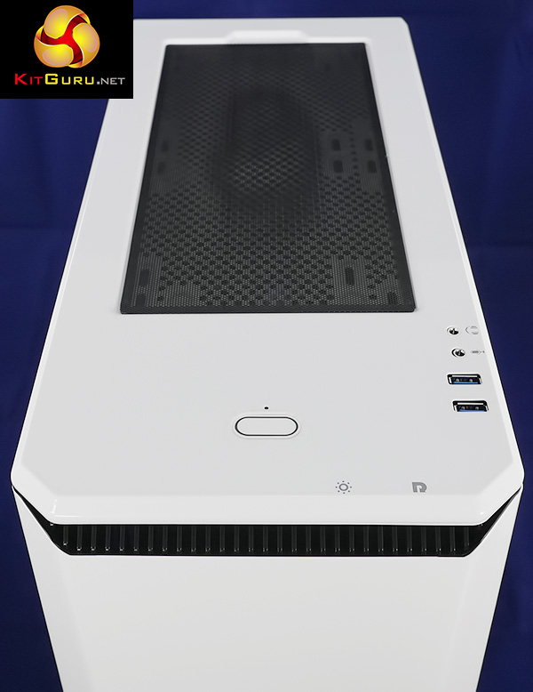 The top panel of the case is minimalist and carries the Power button, two USB 3.0 ports and a pair of headset jacks. If you look closely inside the top air intake vent you will see there are two more buttons; one is the Reset and the other controls the lighting system and allows you to toggle through ten colours. This is pretty damn exciting news for a budget case and the glow from the LED strip at the front of the case combined with the illuminated power button is a winner, however that is only part of the story.