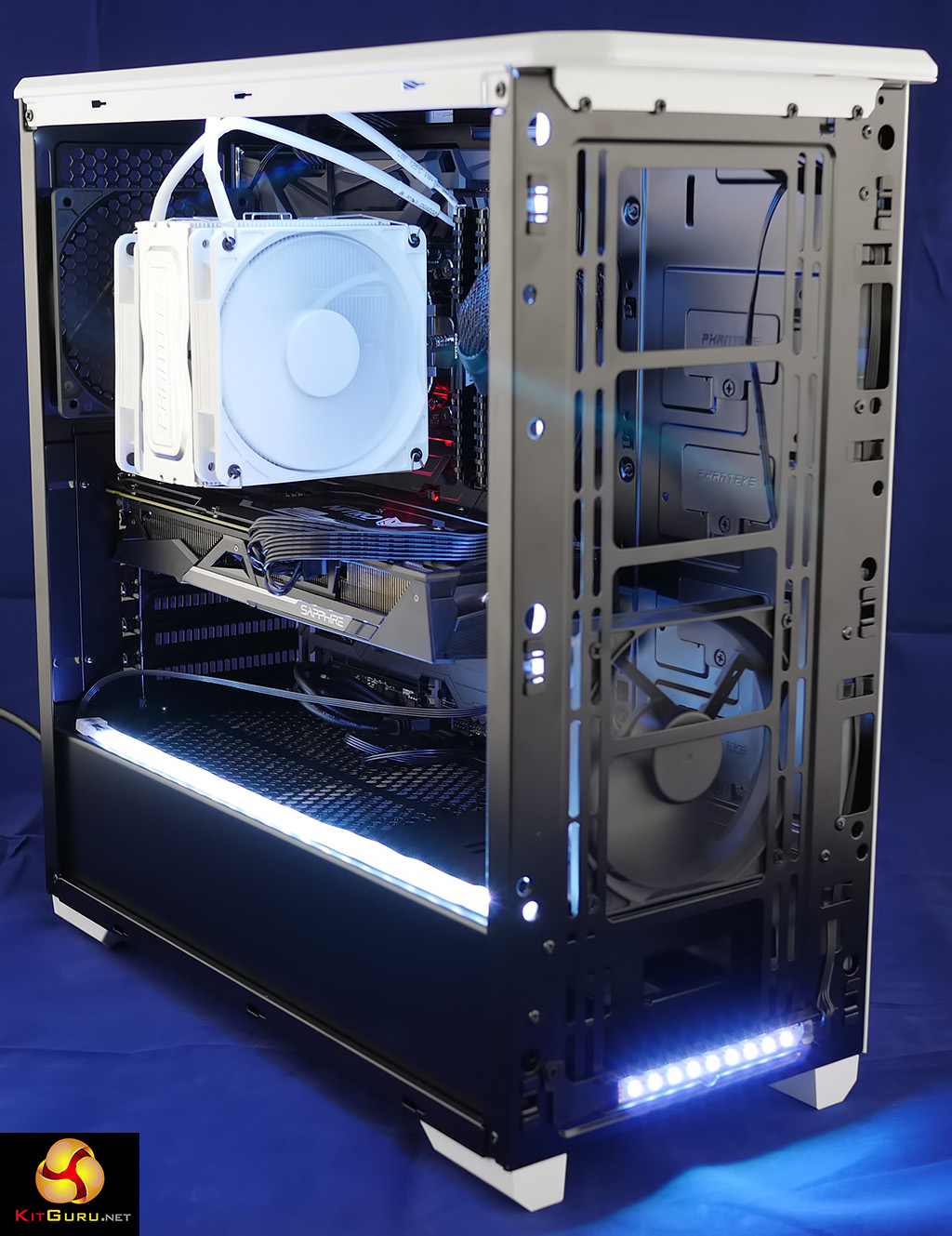 In deference to Phanteks we used their superb PH-TC12DX air cooler rather than a liquid cooling system which might sound a bit peculiar however the CPU was running at stock clock speed and the air cooler did a decent job. The finished PC looks (in our opinion) rather fine and the combined lighting system is absolutely superb. You will need to watch the video (above) to get the full effect.