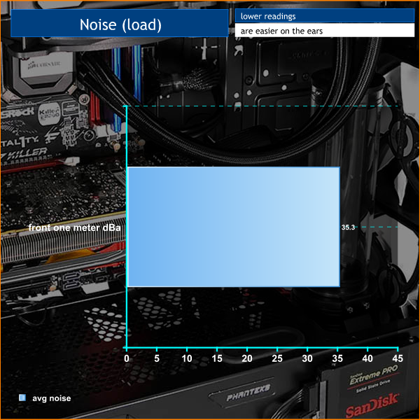 The baffled intake slots and discrete exhaust vents mean this aluminium case is considerably quieter than you might expect if your previous experiences date from some years ago. There were no rattles or panel buzz and the sound of air flow was audible but not intrusive.