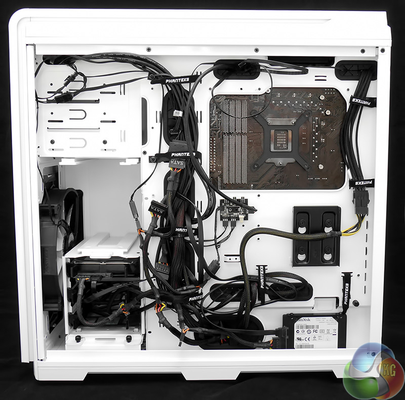 Admittedly the rear of the PC isn't quite so tidy as the front but I took a ‘That'll do' approach and did just enough work for the PC to look correct when viewed through the windowed panel. I installed a SanDisk SSD in one of the bays on the rear of the motherboard tray and a single data HDD in a 3.5-inch bay, which meant I was able to remove one of the two drive towers to assist airflow from the 200mm fan.