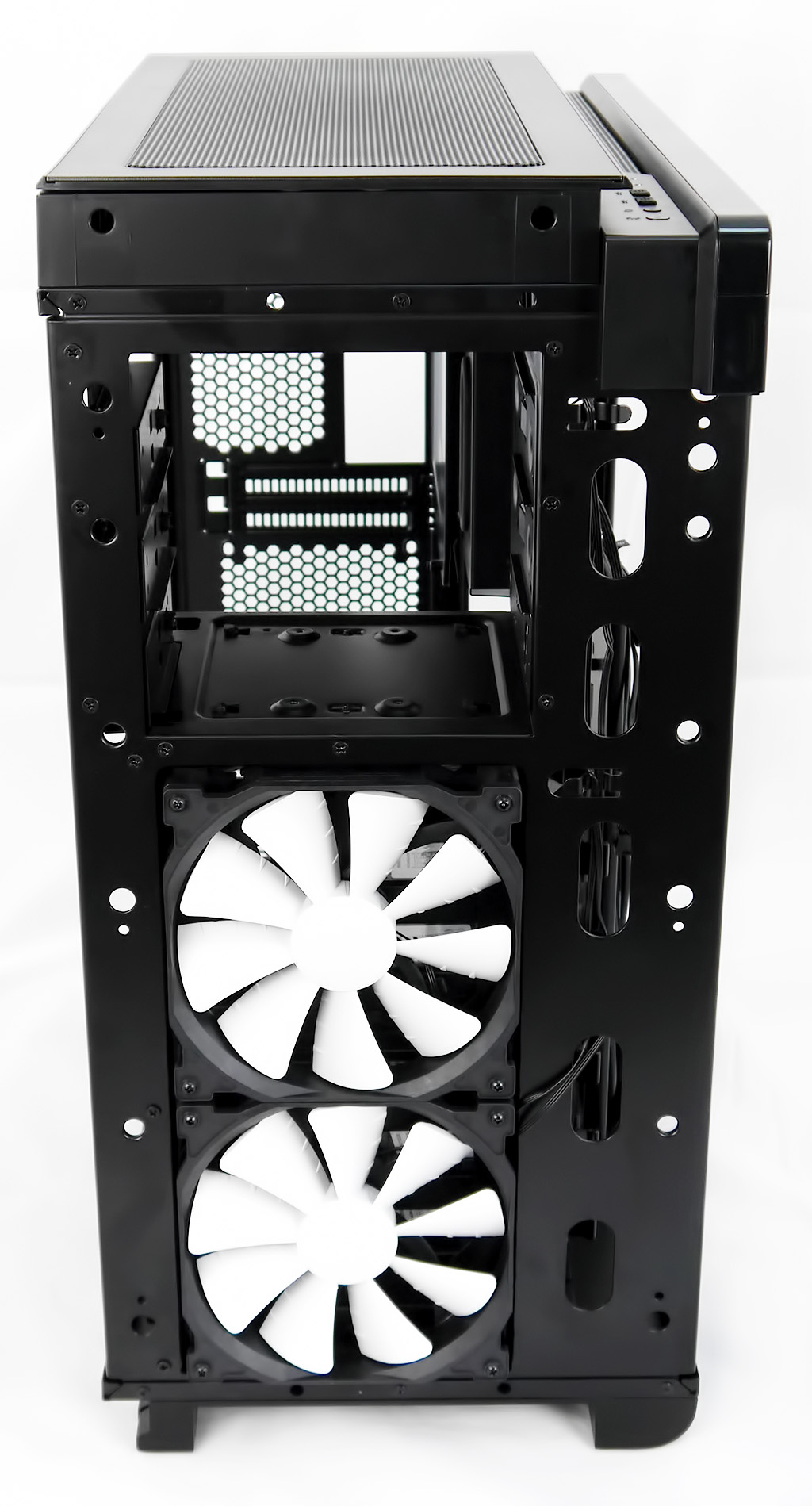 - Fan mounts: 2x 120/140mm front, 3x 120 or 2x 140mm top, 2x 120/140mm rear, 3x 120 or 2x 140mm bottom, 2x 120mm on HDD cage, 2x 120mm side.