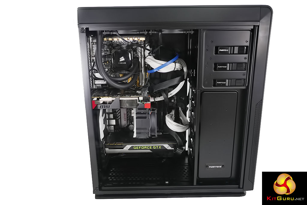 To put this case through its cooling paces we will be using two test systems, both based on Intel Core i7, one 4th Gen and the other 6th Gen. The graphics cards are GTX 760 and GTX 980 and as you will see in the video and photos we have a single ATX power supply running both systems. This set-up allows us to produce a substantial amount of heat and effectively test the Phanteks Enthoo Mini XL‘s cooling capabilities.