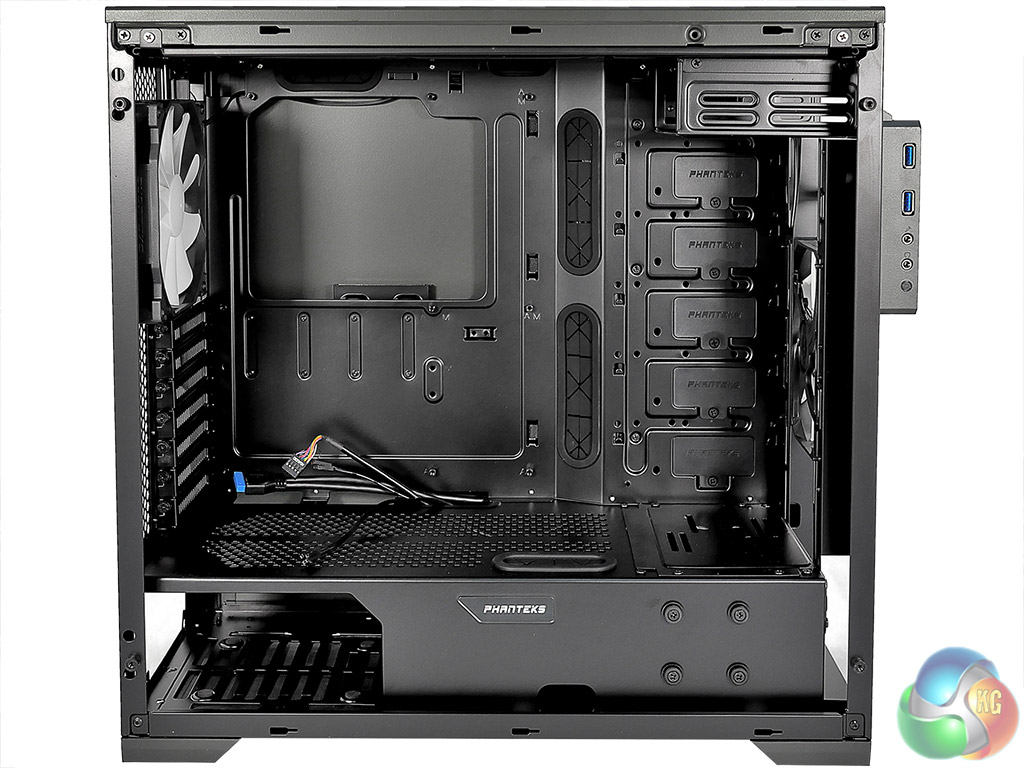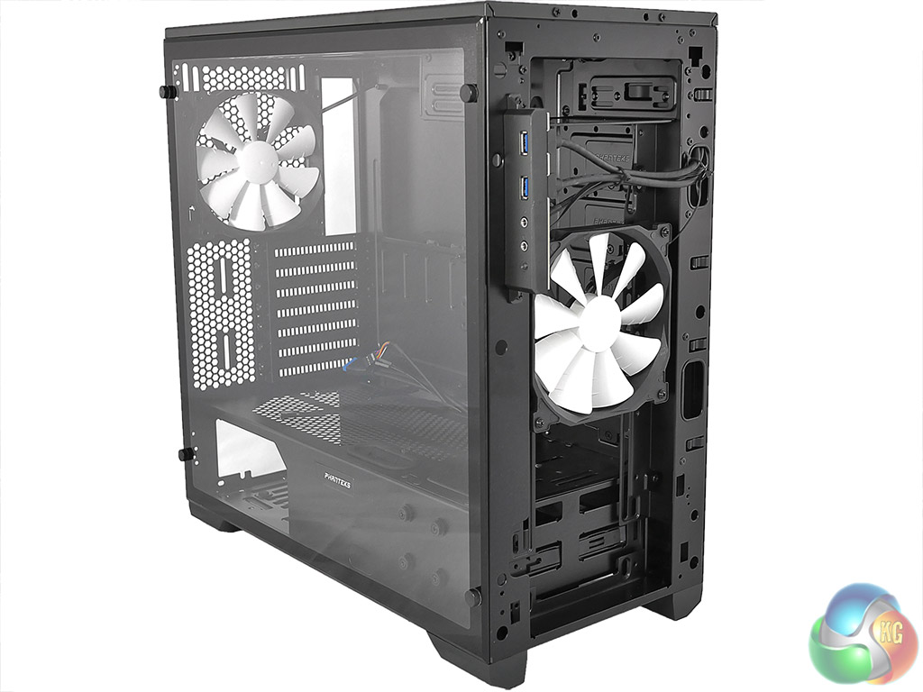 Phanteks Enthoo Pro M is a mid sized tower case that packs in a surprising number of features. Taken at face value, it looks good, is well built and has a neat power supply cover that allows you to tuck most of your cabling out of sight. The original side panel was perfectly OK, however the new tempered glass panel is absolutely superb and shows off the innards of your PC to full effect, as you can see in our photos and videos.