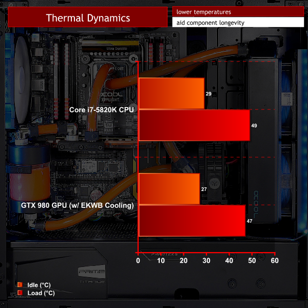 To put this case through its cooling paces we will be using a test system consisting of an Intel Core i7-5820K, EVGA GTX 980 and an SSD. This system allows us to produce a substantial amount of heat and effectively test the Phanteks Enthoo Pro M Glass‘ cooling capabilities.