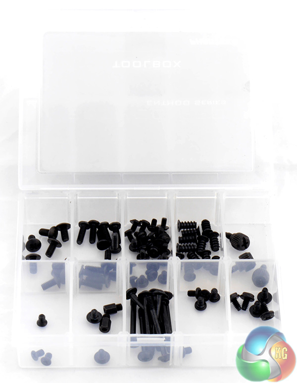The Accessories also include cable ties and a spare Velcro strap as well as a plastic case labelled Toolbox that does not actually contain any tools but does give you a decent selection of fasteners all neatly arranged in compartments.