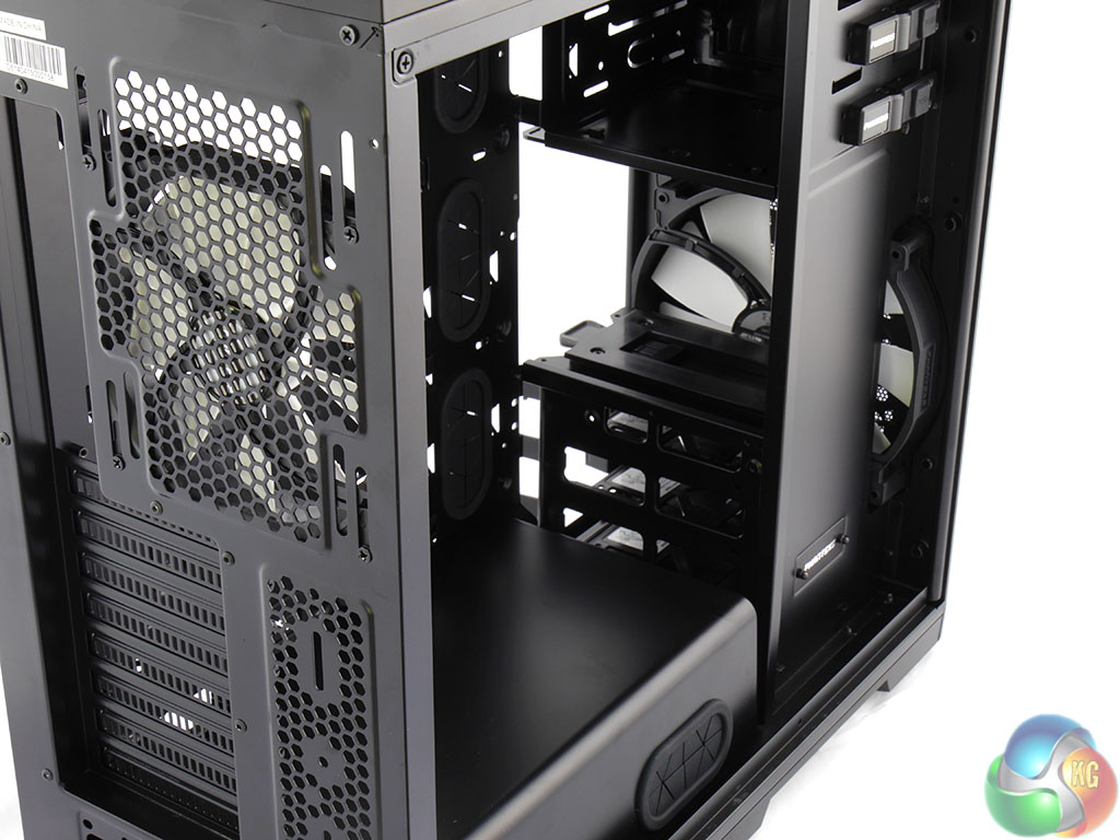 One point that stands out like a sore thumb is the location of the drive tower. It stands directly between the 200mm intake fan and the interior of the case and the stack of 3.5-inch hard drive cages looks like a solid barrier to cooling air.