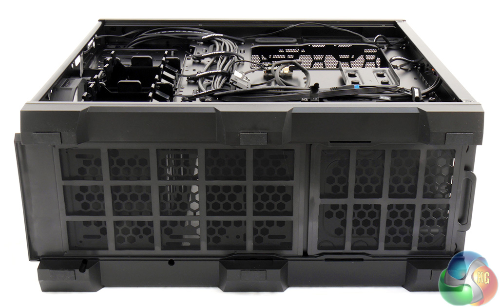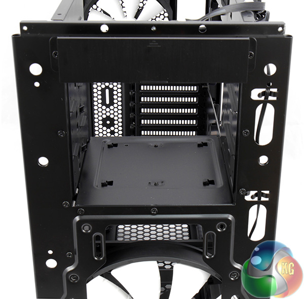 The drive cages slide into place from the back of the PC so the power and data cables are kept out of sight.