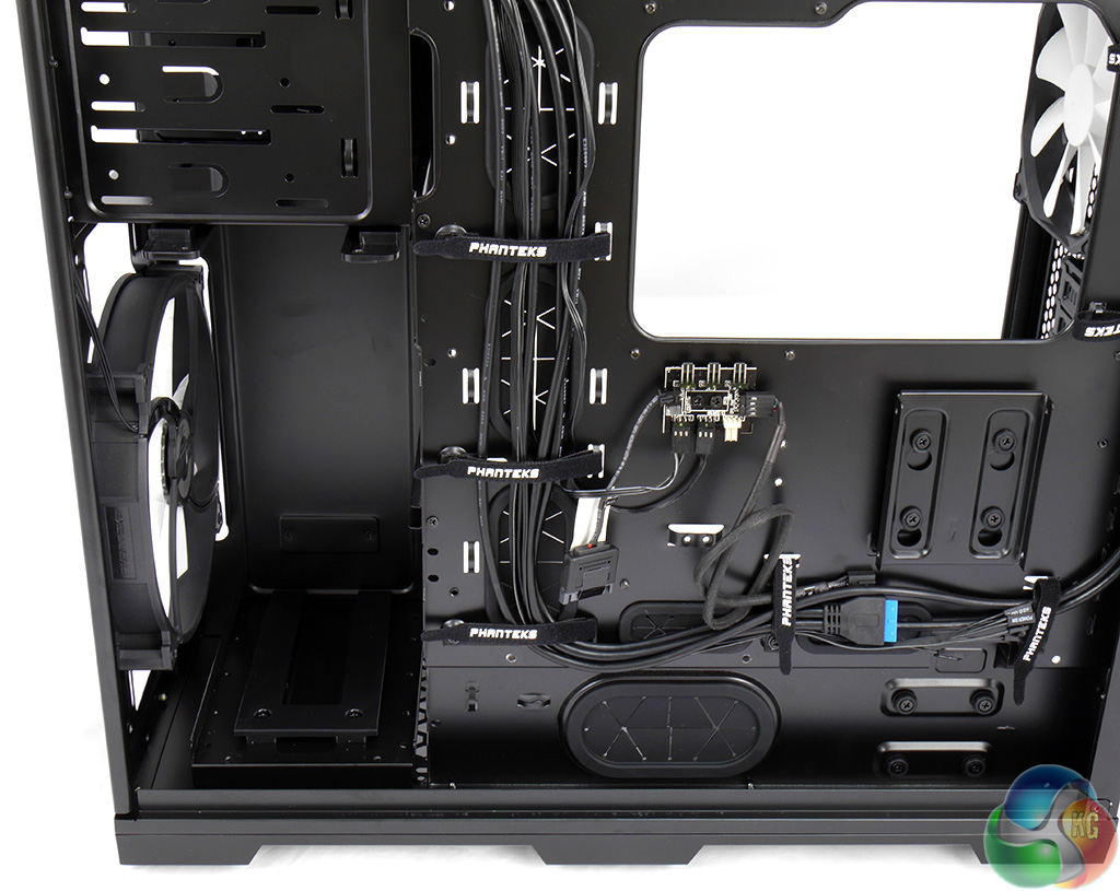 Cable management is assisted by six Velcro straps that carry the Phanteks logo. In the course of my PC build for these photos I used precisely two cable ties to route the PCI Express power to the graphics card. The Velcro straps sufficed for everything else. Another feature that helps keep things neat and tidy is the PWM hub.