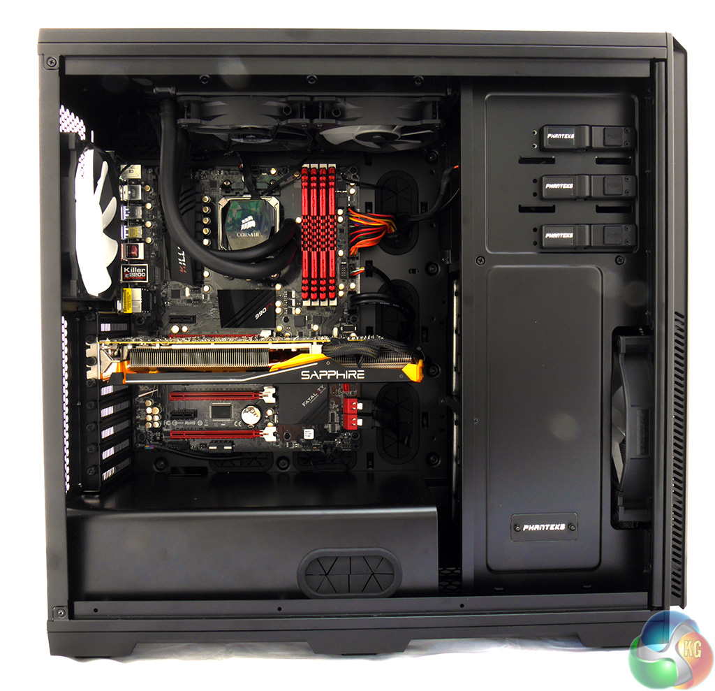 Switching from the Noctua NH-D15 to the Corsair H100i liquid cooler was dead easy. With the top cover removed from the case you are spoilt for choice with mounting holes and with the hot air exhausting from the top of the case you can be sure the PC will run nice and cool.