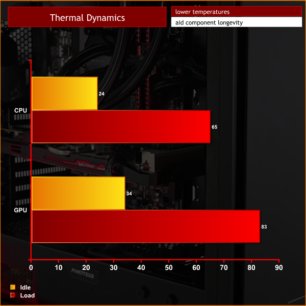 We kept the Corsair H100i fan speed low to keep noise down to reasonable levels with the consequence that cooling was absolutely fine without being anything special. Our experience with a custom loop installed in Phanteks Pro M (which has a virtually identical interior) is that you can easily get CPU and GPU temperatures below 40 degrees Celsius. With the system you see in our photos and video the Phanteks scores a passing grade for cooling.