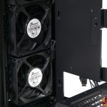 During our testing it was clear that Syncro Q704 does a decent job of cooling, but frankly we expected nothing less with four case fans running at 2,150rpm and three 120mm fans on the Celsius S360 cooler. While we are confident the front panel of the case allows cooling air to enter the chamber, and we could see the large filters in each panel have plenty of surface area and offer little obstruction, even so it felt like something odd was going on.