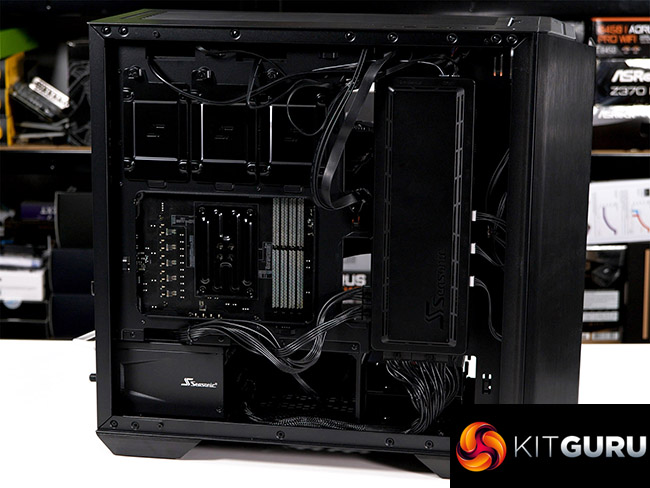 Instead we find ourselves taking a step back and looking at the fundamentals of the design. This case supports Connect, which means the cables connections are arranged in a certain area of the case, and that means the best way to shorten the cable paths is to invert the motherboard. That inevitably means you end up with a graphics card that has the cooling fans positioned next to the cooling in the roof of the case, and whether or not that works correctly it looks very unusual and slightly odd.