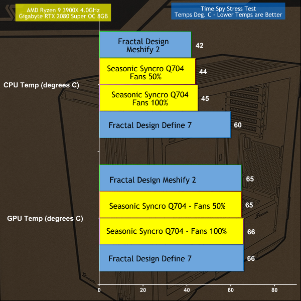 To put this case through its cooling paces we will be using a test system consisting of an AMD Ryzen 9 3900X, Gigabyte RTX 2080 Super and an SSD. This system allows us to produce a substantial amount of heat and effectively test the Seasonic Syncro Q704‘s cooling capabilities.