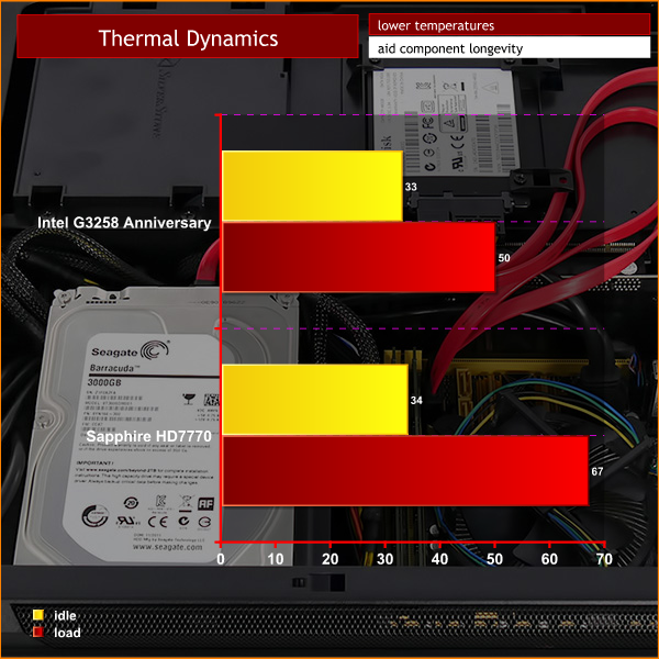 While we could have used an R9 380 ITX or a GTX 960 we instead chose an HD 7770 as we had one to hand. That may sound like a casual way of selecting a graphics card but we were well aware the Pentium G3258 would as a performance bottleneck if we went heavy on the graphics so it seemed like a better idea to choose a system that was cool and quiet.