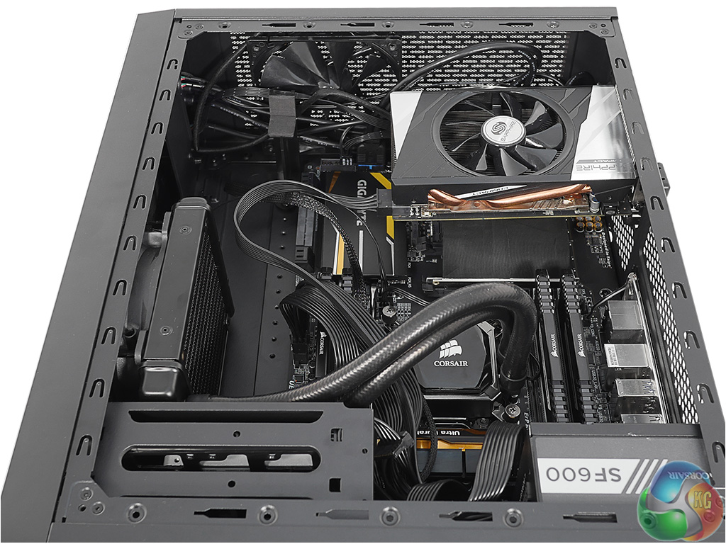 The rear of the case is also heavily ventilated so you shouldn’t have too much trouble getting sufficient air to flow with an All In One. If you choose a low profile air cooler you will need to take care to ensure the cooler isn’t positioned too close to the windowed side panel.