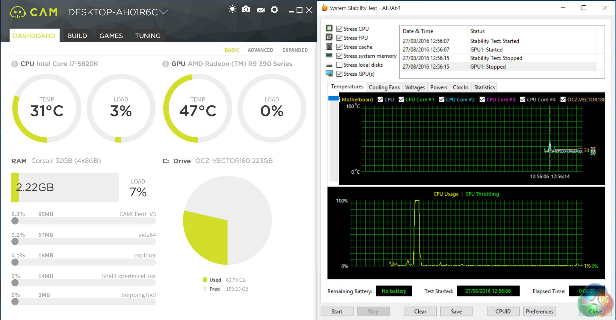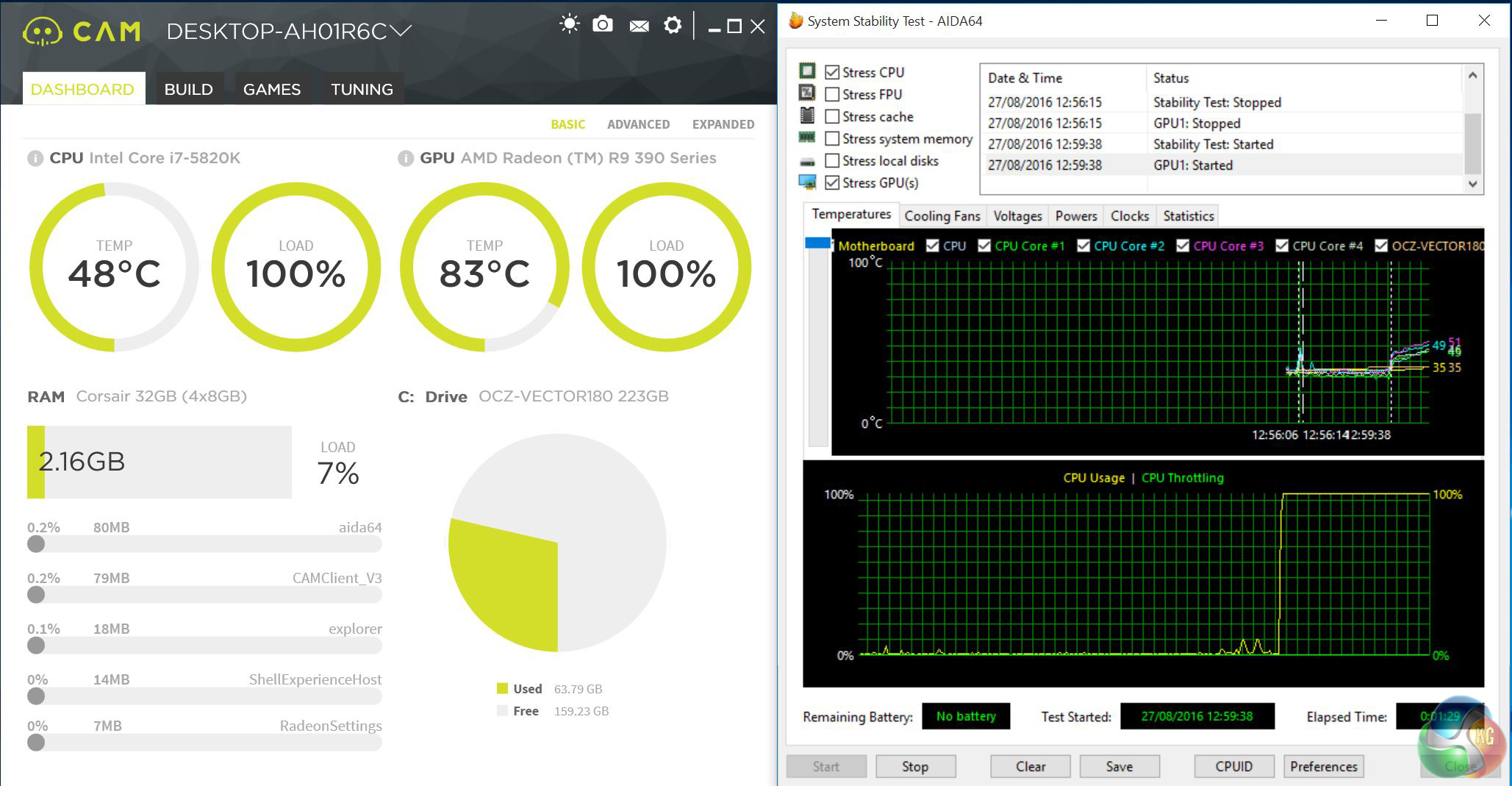 For stress testing we use AIDA64 to create the maximum heat output to stress our CPU and GPU.