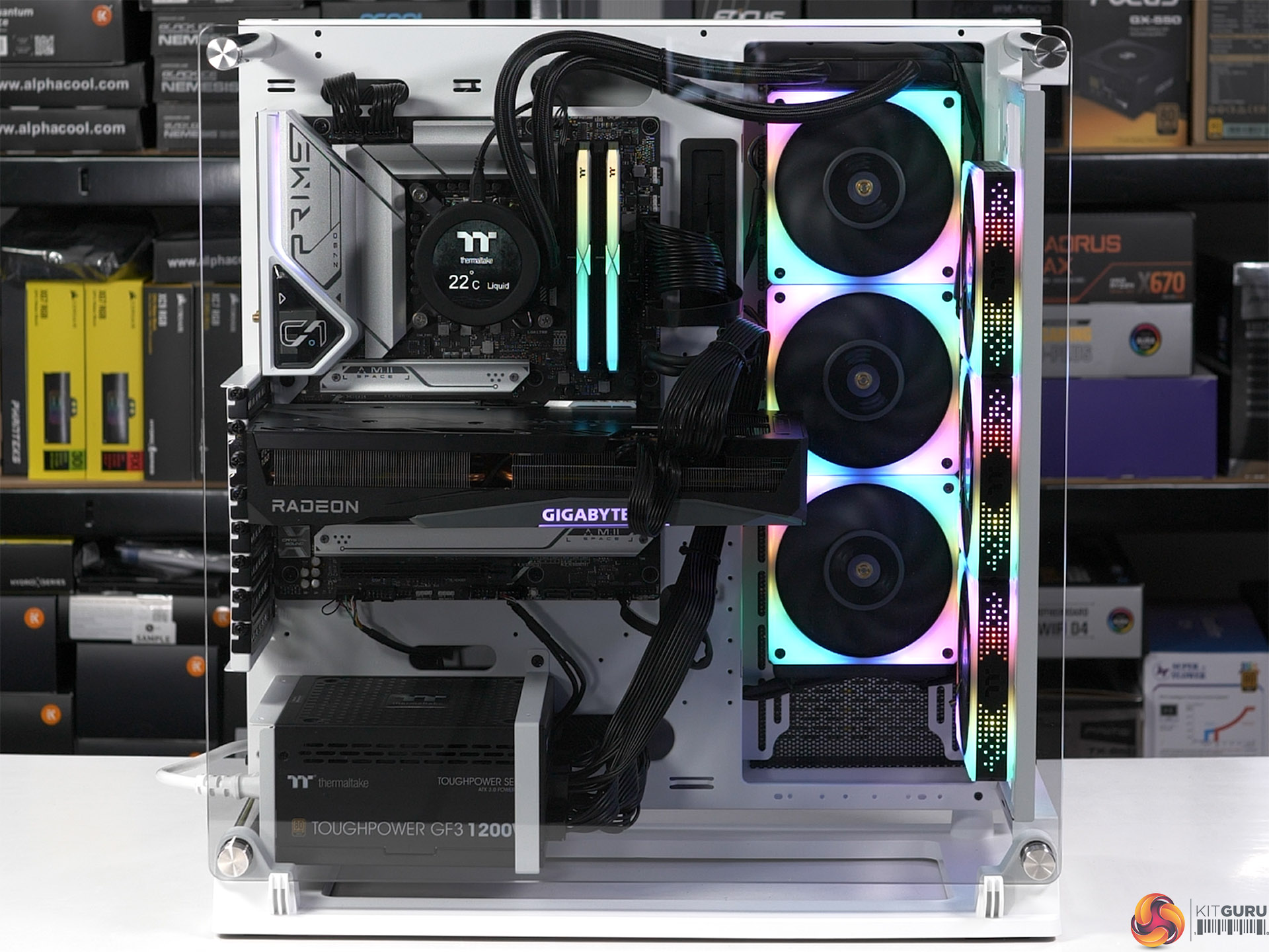In our video we cover the hardware that Thermaltake sent us including their ToughRAM XG RGB D5-6000 which has impressive RGB lighting.