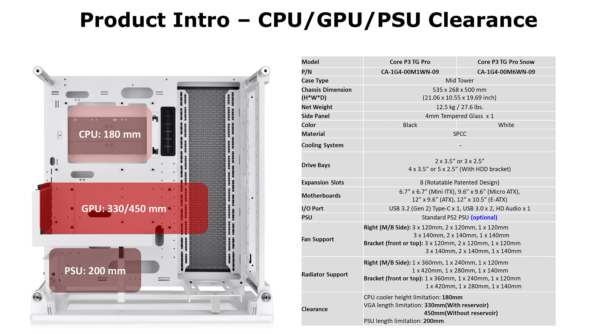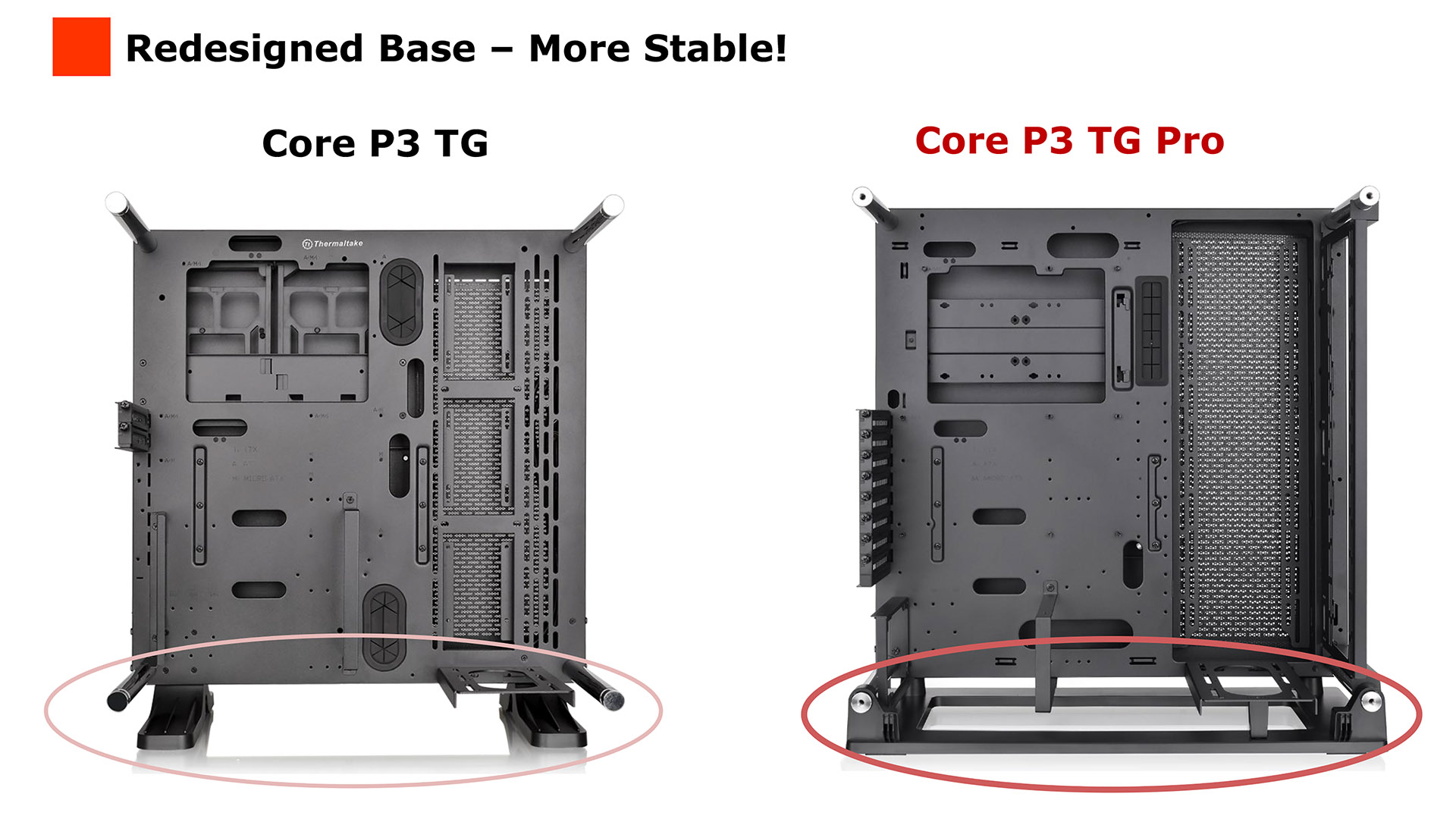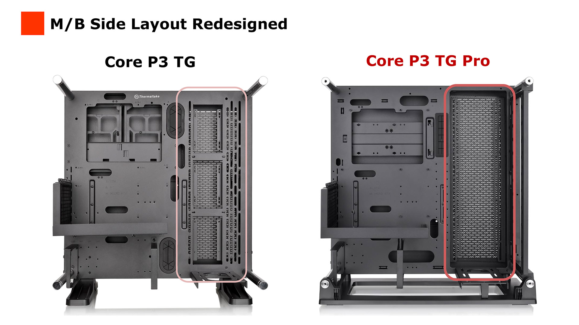 Our photo of the Mesh Liquid P3 KG in the original Core P3 dates from October 2017 and serves as a useful reminder of the limitations of the original chassis. When you look at the details of the Core P3 Pro you can see how Thermaltake has opened up the paths for air flow and has worked on increasing the options for radiators, fans and AIO coolers.