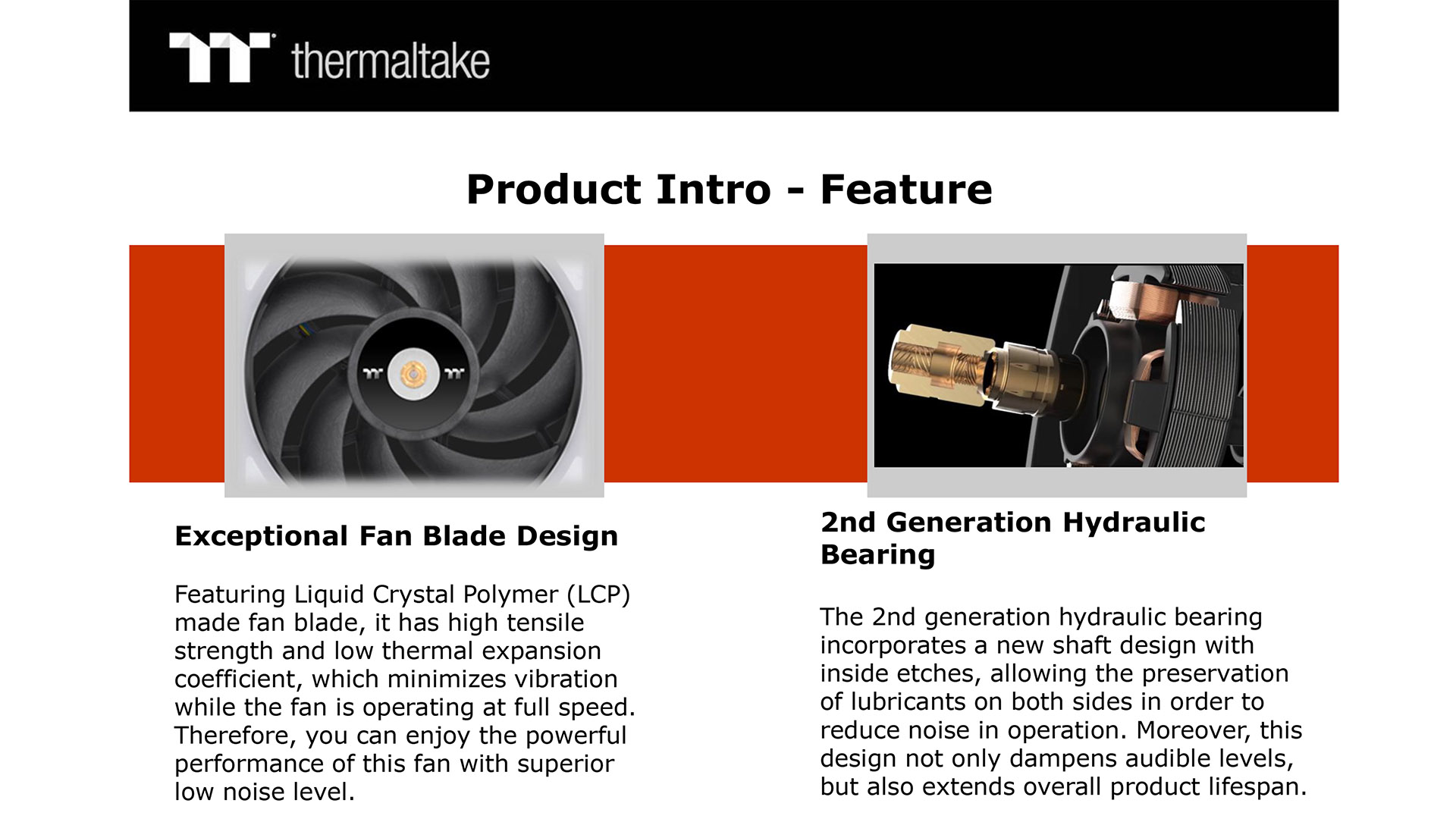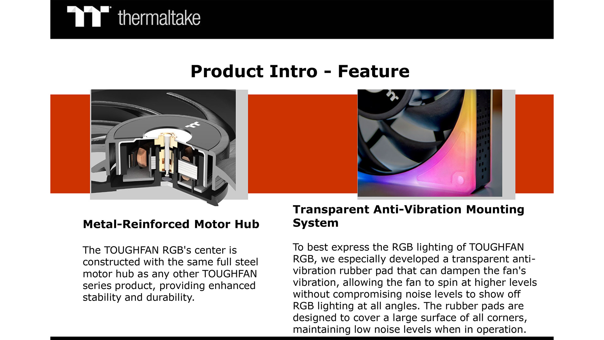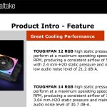 The images here show some details about the ToughFan 12 RGB and ToughPower GF3 1200W. The fans sport RGB lighting that can be seen from the front, back and edges however the design and construction also bears some scrutiny. The fan blades use Liquid Crystal Polymer to ensure the blades maintain their shape (we have seen this material in high end fans from Phanteks and Noctua) . The Tough part of the name is earned by the use of a steel motor hub to guarantee stability and the frame of the fan seals the opening in the case to maintain the air pressure.