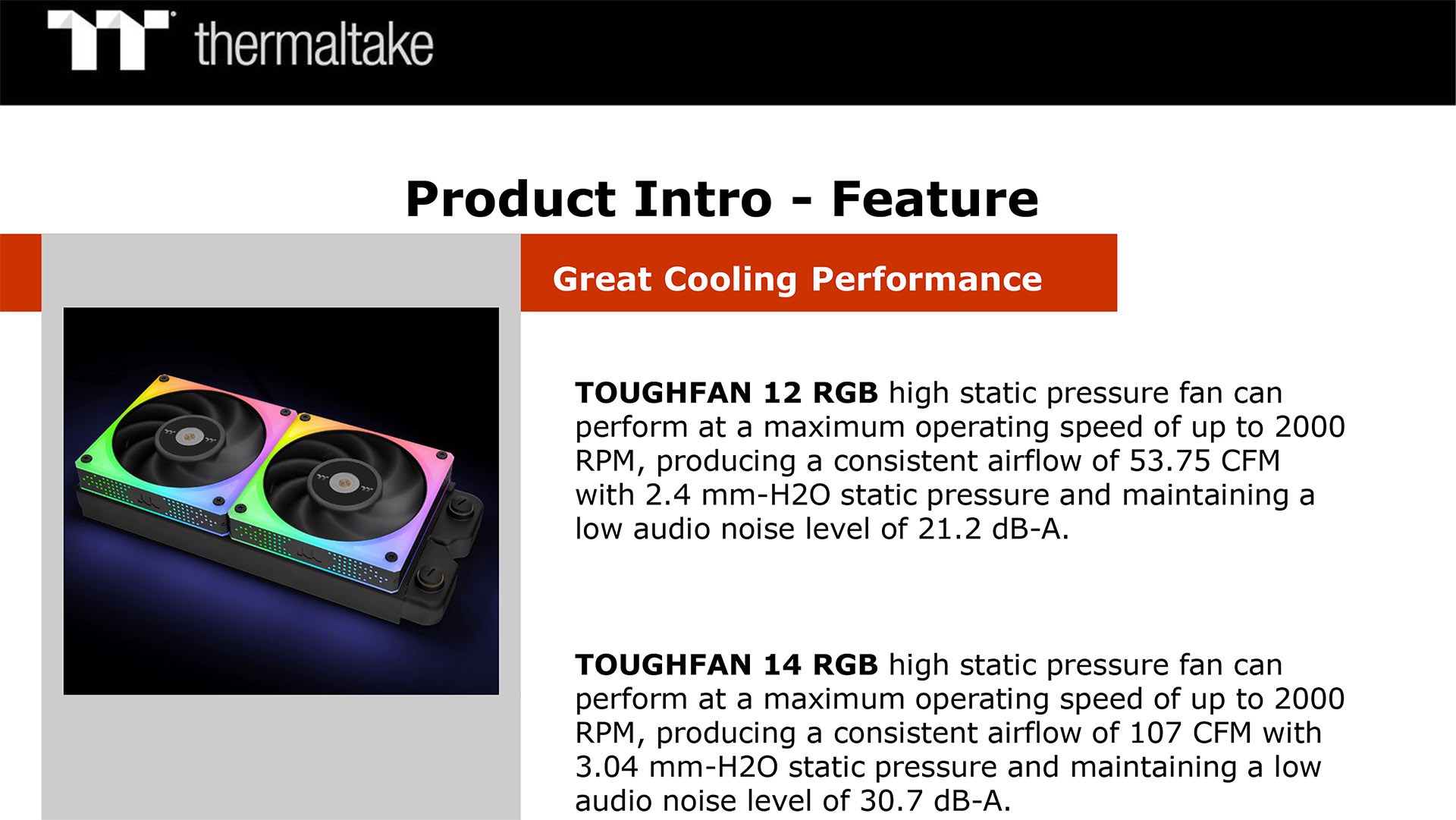 - Fans: 6x Thermaltake ToughFan 12 RGB