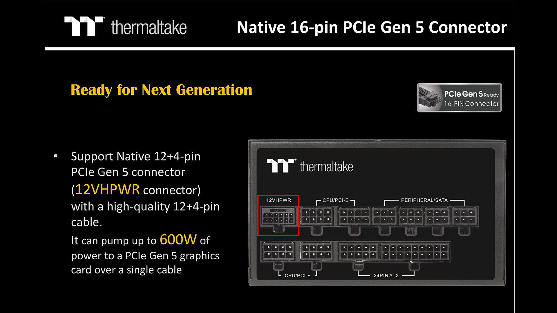 On the power supply side of things we have the new ToughPower GF3 1200W which supports the new ATX 3.0 standard and includes a native PCIe Gen 5.0 connector which means the PSU is ready for an Nvidia RTX 40-series graphics card.