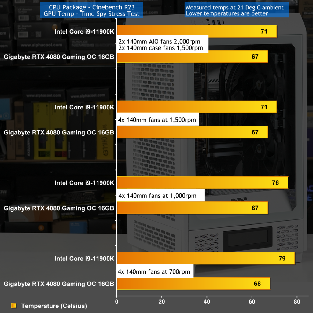 To put this case through its cooling paces we will be using a test system consisting of an Intel Core i9-11900K, RTX 4080 and an SSD. This system allows us to produce a substantial amount of heat and effectively test the Thermaltake The Tower 200‘s cooling capabilities.