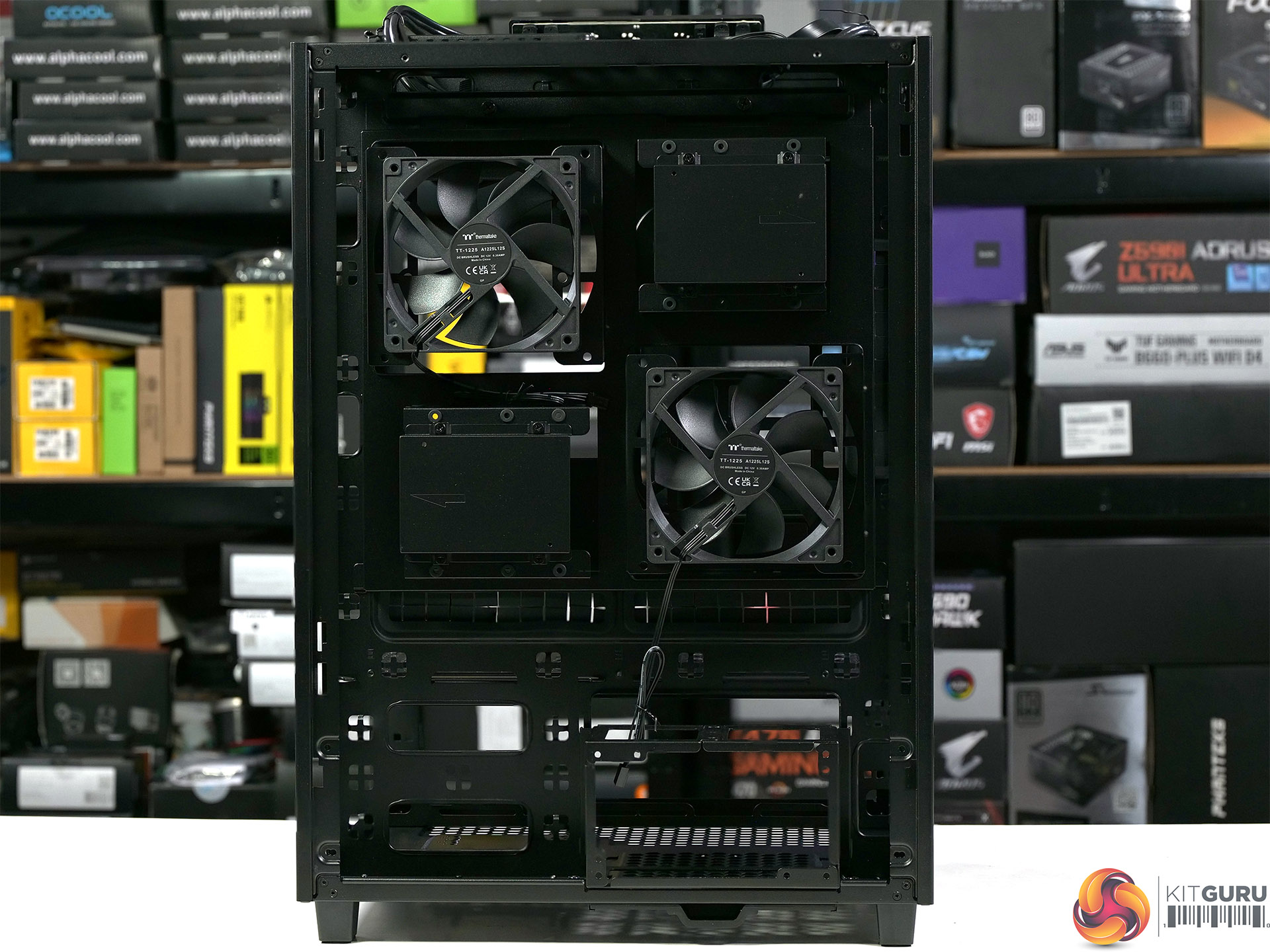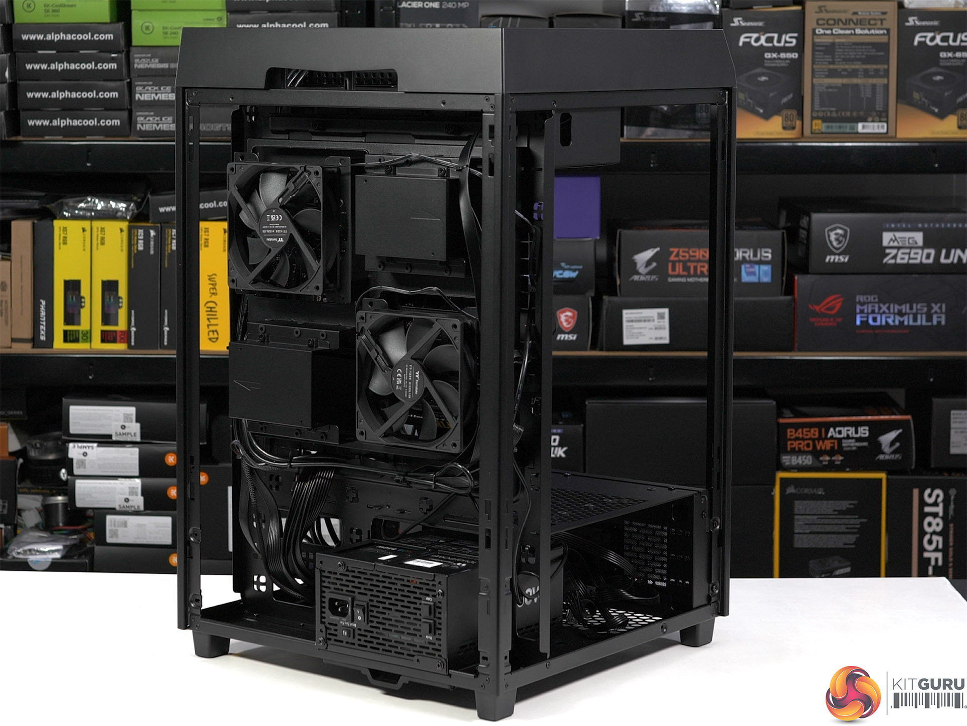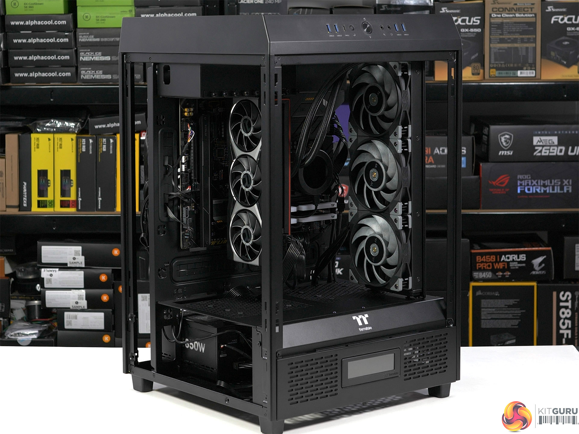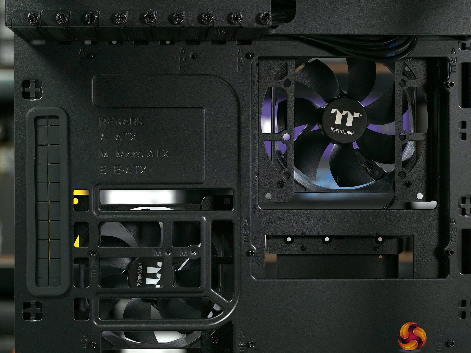 You would think the top fan mounts would be used for exhaust as hot air rises, however Thermaltake makes it clear the top, bottom, front and left are for intake while the right side and rear are for exhaust. To our eyes this is another way of saying ‘cram in as much air as possible and hope it reaches the correct places'.