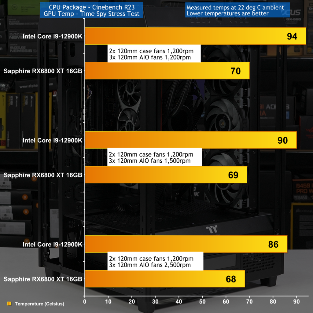 The temperature of our graphics card was absolutely fine, however the Core i9-12900K was definitely on the hotter side of warm. We have every confidence The Tower 500 would breathe better if we installed fans in the floor and roof however this is a review of the case, rather than a guide to building a PC, so we added the AIO to the stock fans and left it at that.