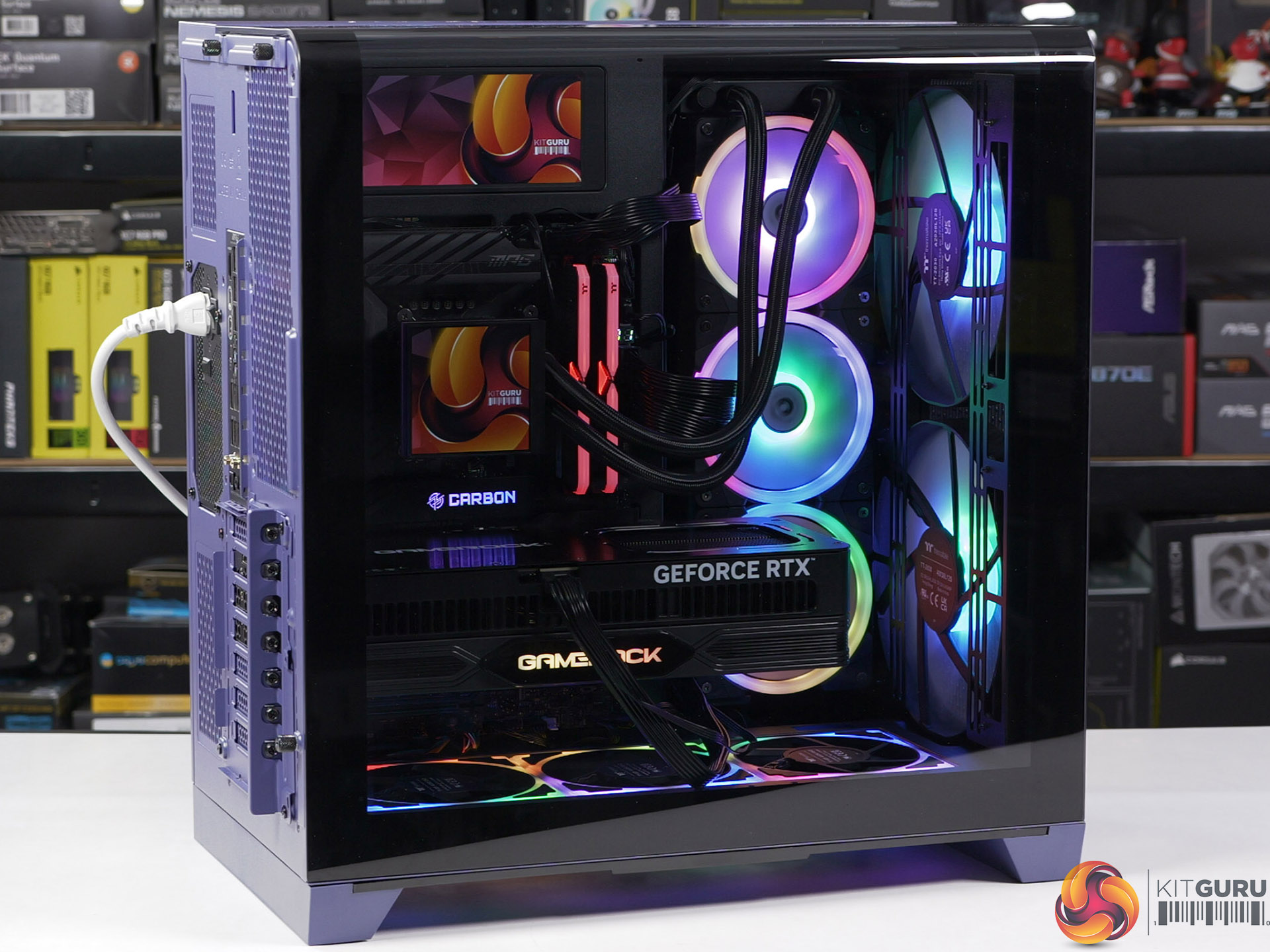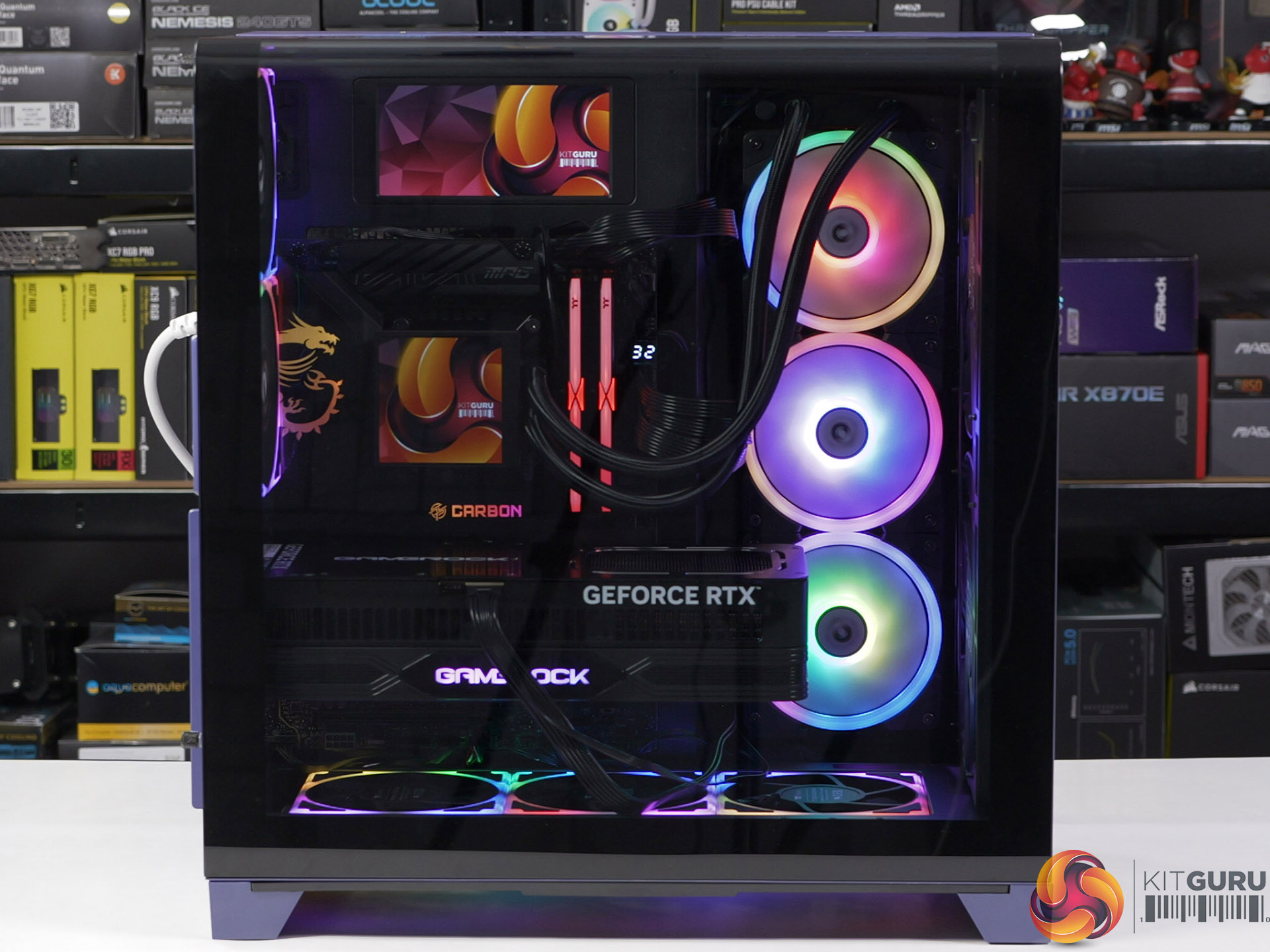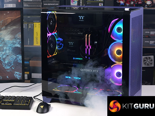 KitGuru first saw the Thermaltake View 390 at CES in January 2025 and we were taken by the curves glass main panel which curves across the top of the case. This gives the 390 its View name and also means you have cooling in the floor, front, side and back but not up top as the roof is solid glass. For this featured build we are using a large pile of Thermaltake hardware which includes a significant amount of ARGB lighting.