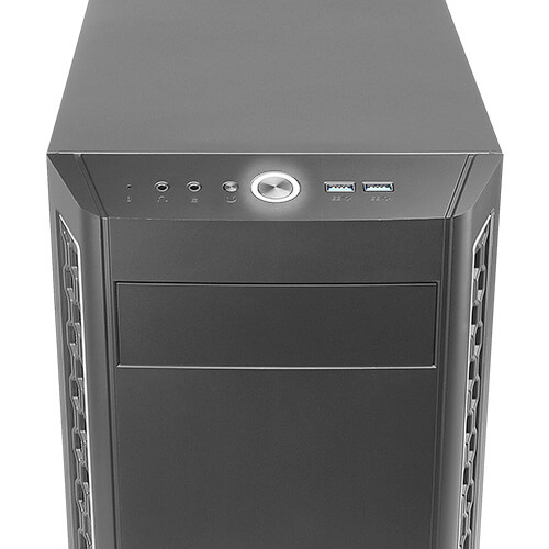 As far as drives go, there are two convertible tool-less 2.5″/3.5″ HDD drive cages, two 2.5″ SSD mounting spaces as well as seven expansion slots. The I/O panel has 2x USB 3.0 ports and HD audio ports as well as power and reset switches.