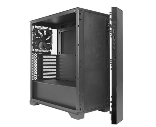 The Antec P82 Silent mid-tower case uses clean lines for a minimalist appearance, while the interior is designed to accomodate high-end PC components. There are ventilation stripes along the front panel, a built-in fan controller and two 120mm fans in the front as well as a 120mm rear fan for exhaust.