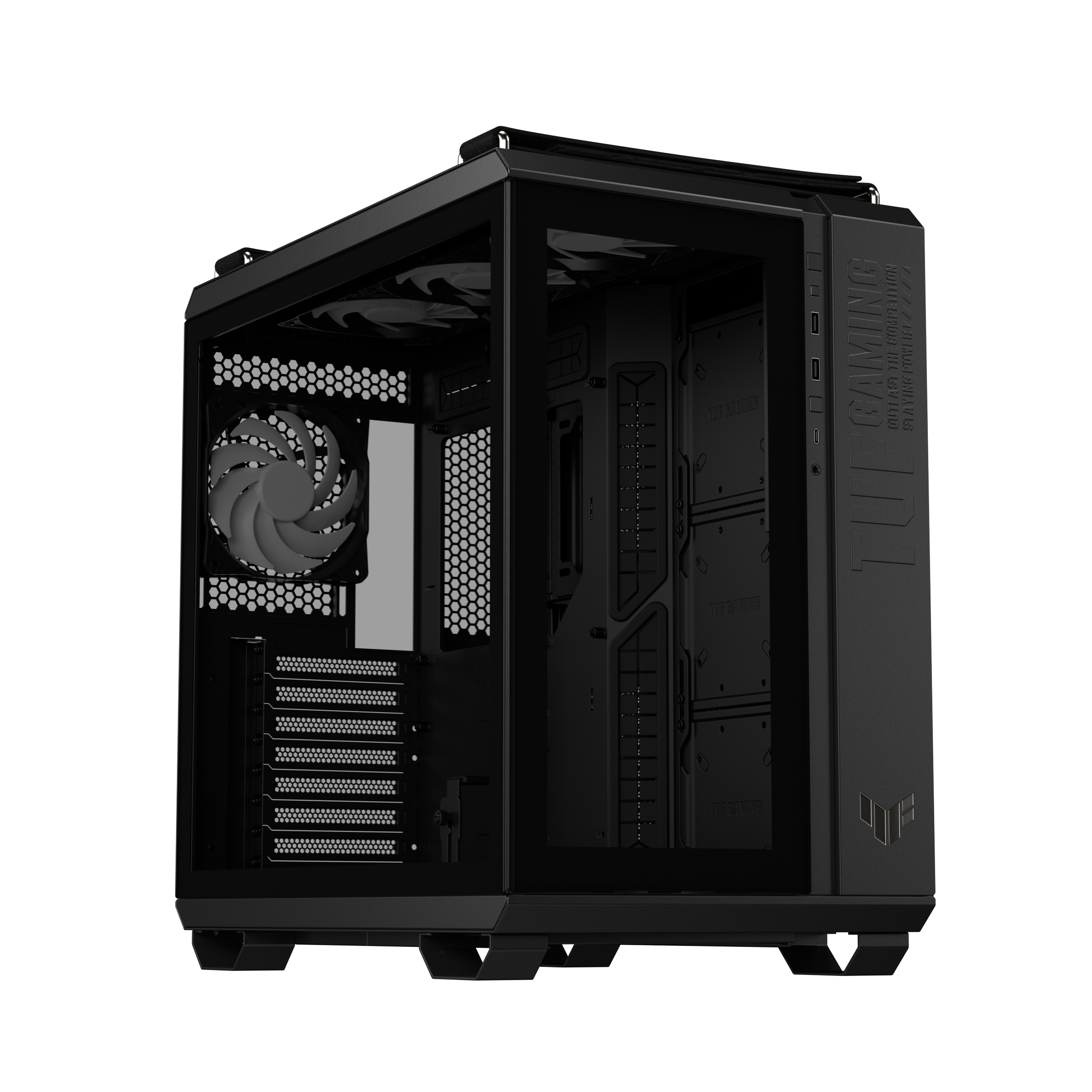 The TUF Gaming GT502 chassis gives users a wide array of options for planning their next high-powered build. It arrives in two variants: the TUF Gaming GT502 Plus, which ships with four pre-installed ARGB fans and an ARGB hub, and the TUF Gaming GT502, which ships without fans, so you can install your own fans of choice. In all, the chassis has room for 13 fans, which should be more than enough to keep even high-end builds cool.