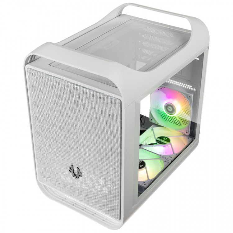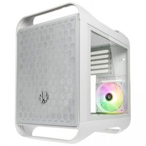 The BitFenix Prodigy M 2022 is available in black and white – there is also a version with ARGB LEDs and an RGB fan included. Across the line-up, each case has a honeycomb mesh front panel and mesh on the top panel for improved airflow. In the roof of the case, users can fit up to a 280mm radiator, or you can put a 120mm AIO in the exhaust fan spot.