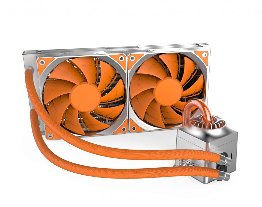 Finally, there is also an Electro Limited Edition of Deepcool's popular Captain 240EX RGB all-in-one liquid cooler. For this one, the radiator, fan shrouds and waterblock are completely silver, with orange accents, tubing and fans. This is the TR4 edition of the cooler, making it compatible with AMD's Ryzen Threadripper processors.