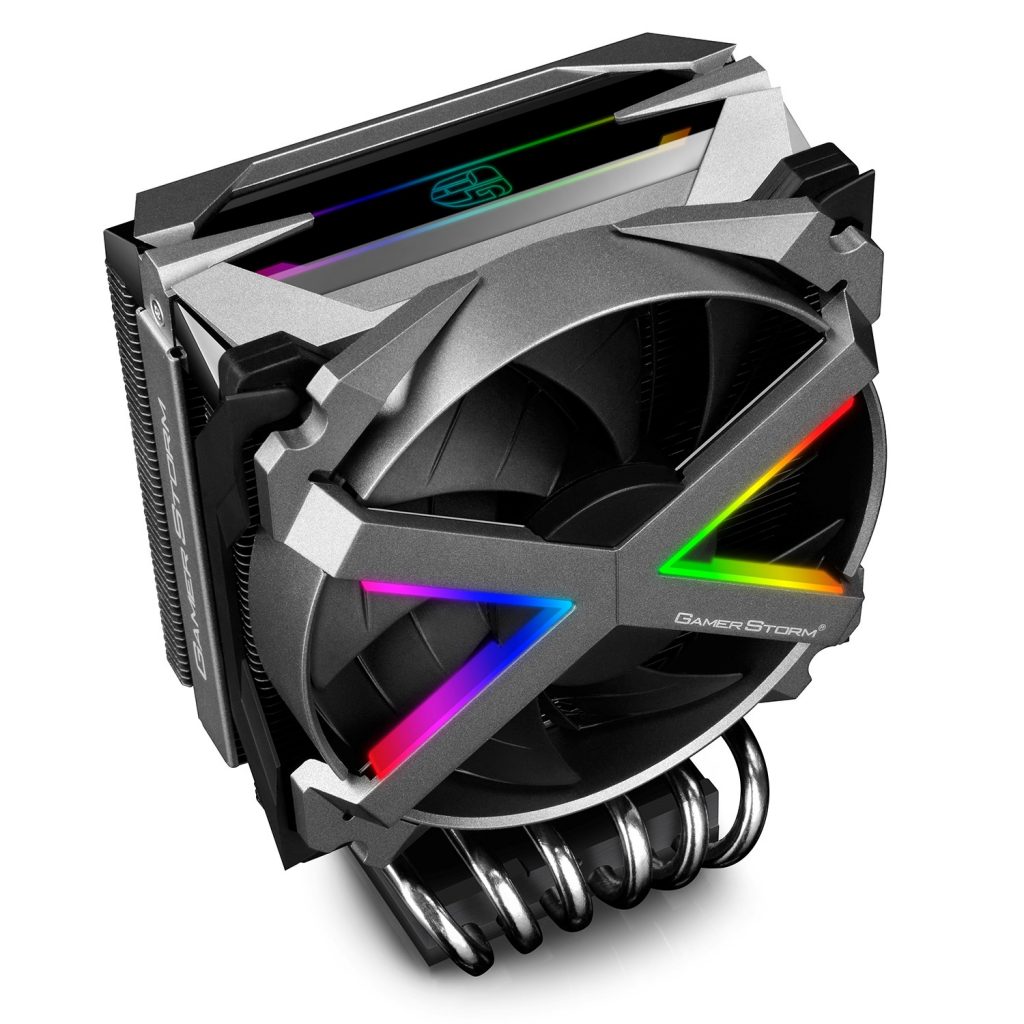 There is one more announcement on the list and this time, it's a brand new product rather than a limited edition. Today, Deepcool is launching the FRYZEN air cooler for AMD's AM4/TR4 sockets. It's a sleek, black air cooler with six heat pipes, and an exclusive metal fan frame with inverse double-bladed fans, offering twice the air pressure compared to a traditional fan/shroud combo. There is also RGB all over the place, so there is plenty of opportunity for color customization.
