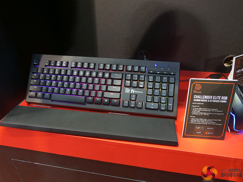 Finally, Thermaltake also has some new peripherals on the way. If you are after a mouse/keyboard combo, then the Challenger Elite package is on the way. The keyboard is membrane but packs RGB and a magnetic wrist rest, the mouse is also RGB, the combo together will cost $69.99.