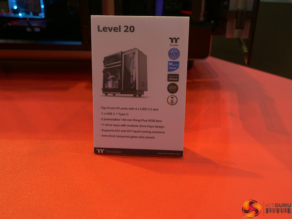 Finally, the flagship of this range is the Thermaltake Level 20. We managed to get a quick look at this at CES earlier this year. The chassis comes with three separate compartments to isolate cooling, hardware and your PSU/cables separately. Construction-wise, the case is built out of 4mm aluminium panels, with tempered glass side windows.