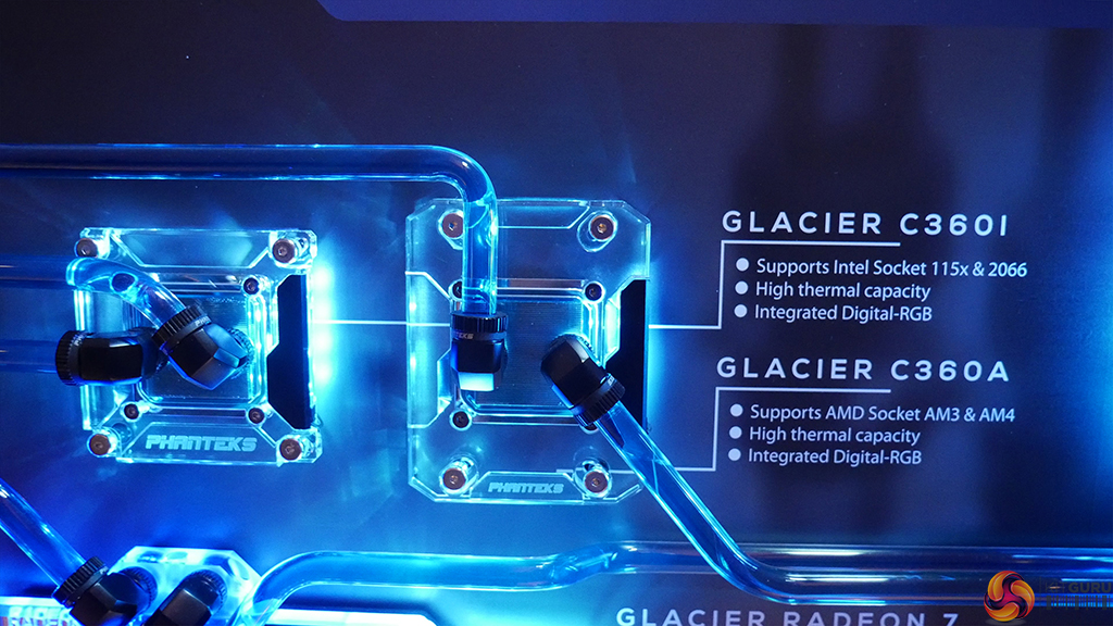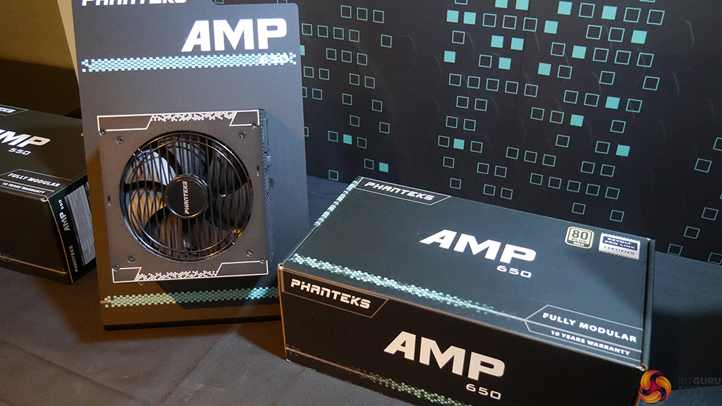 Many of the systems on show in the video feature Phanteks Glacier liquid cooling gear. In terms of new blocks, Radeon 7 graphics card owners will be able to pick up a Phanteks block for custom liquid cooling. Elsewhere, Phanteks is also coming out with its own AMP series of power supplies, which are made in partnership with Seasonic, are fully modular and rated for 80Plus Gold efficiency.
