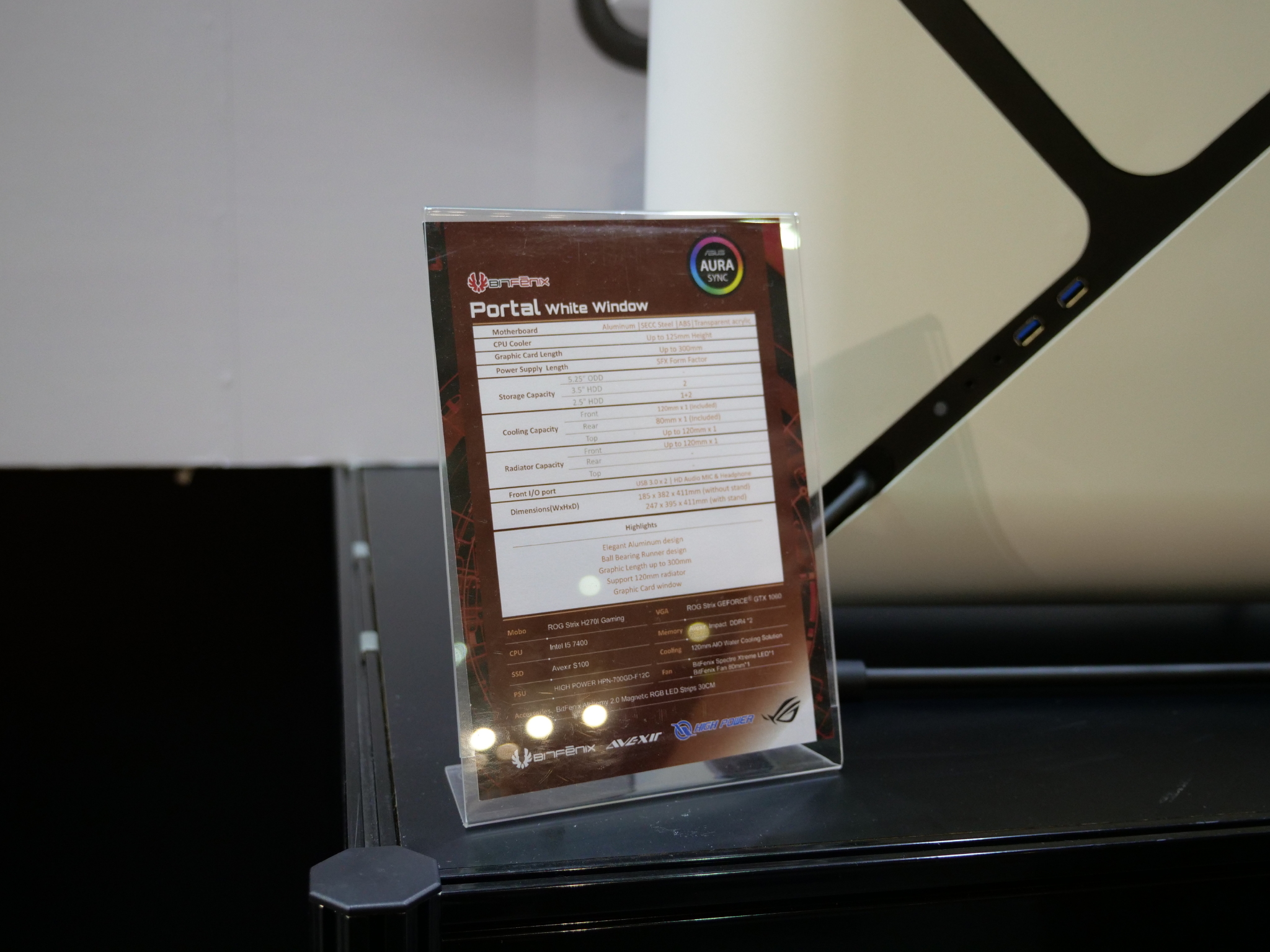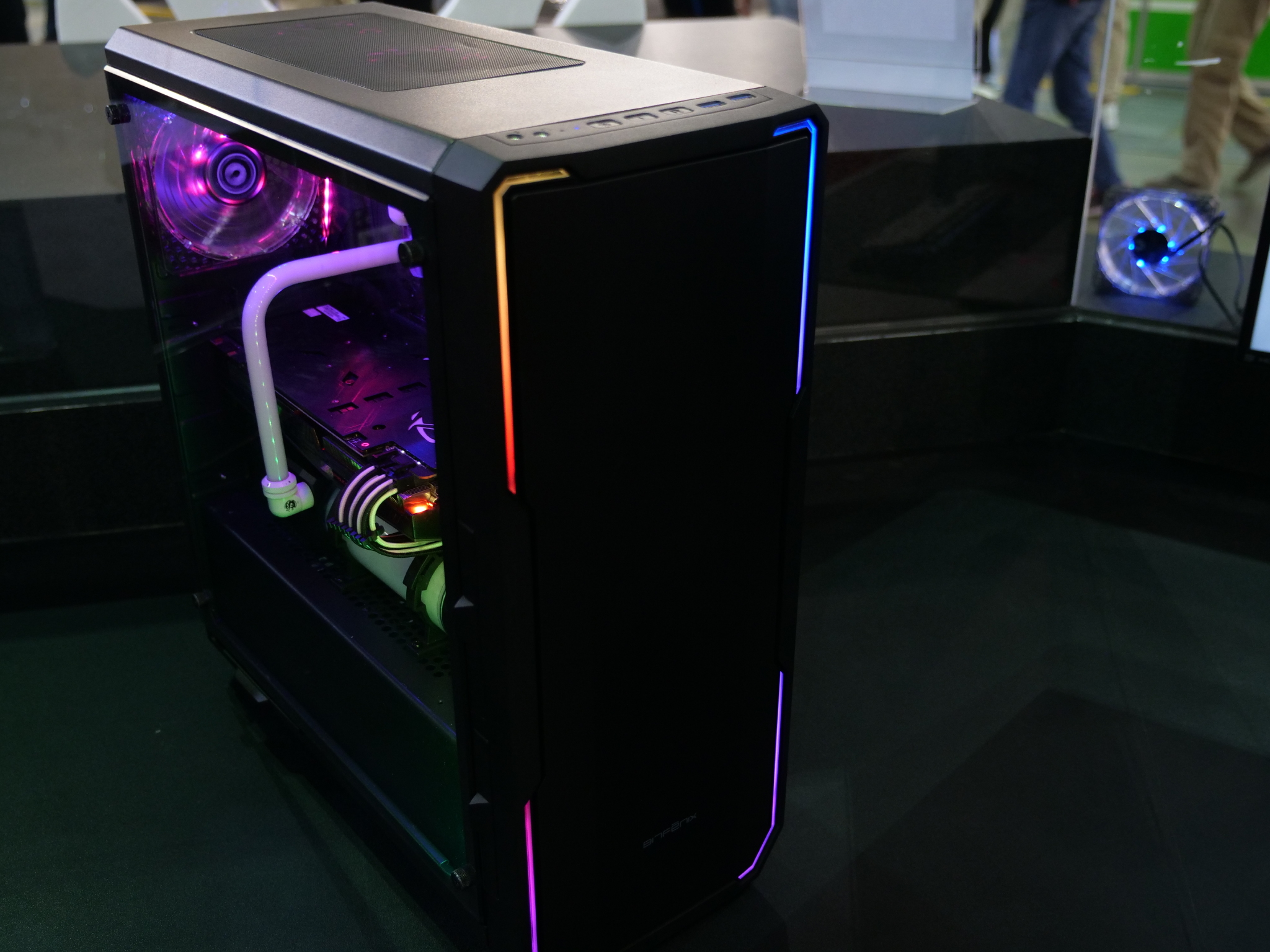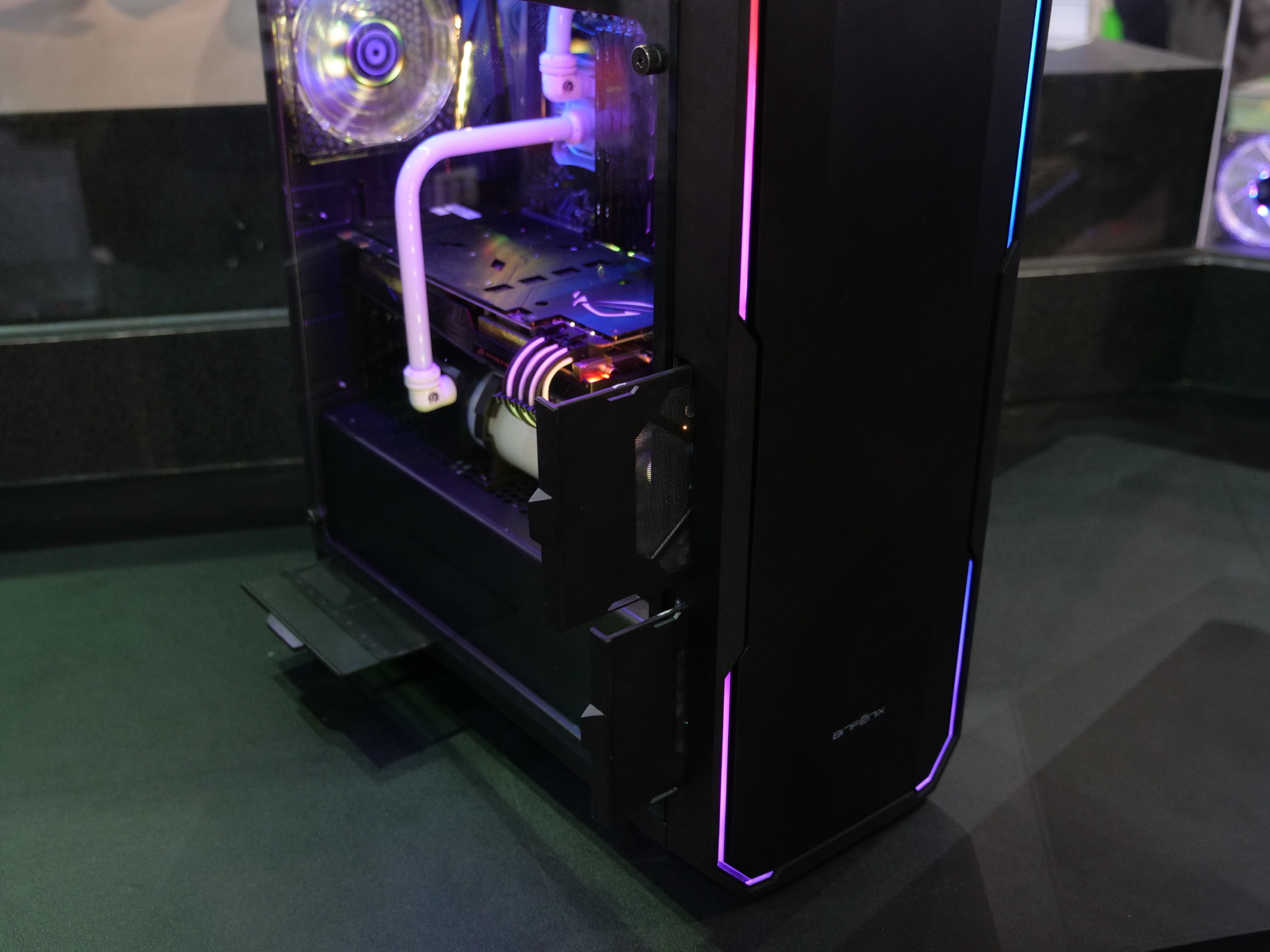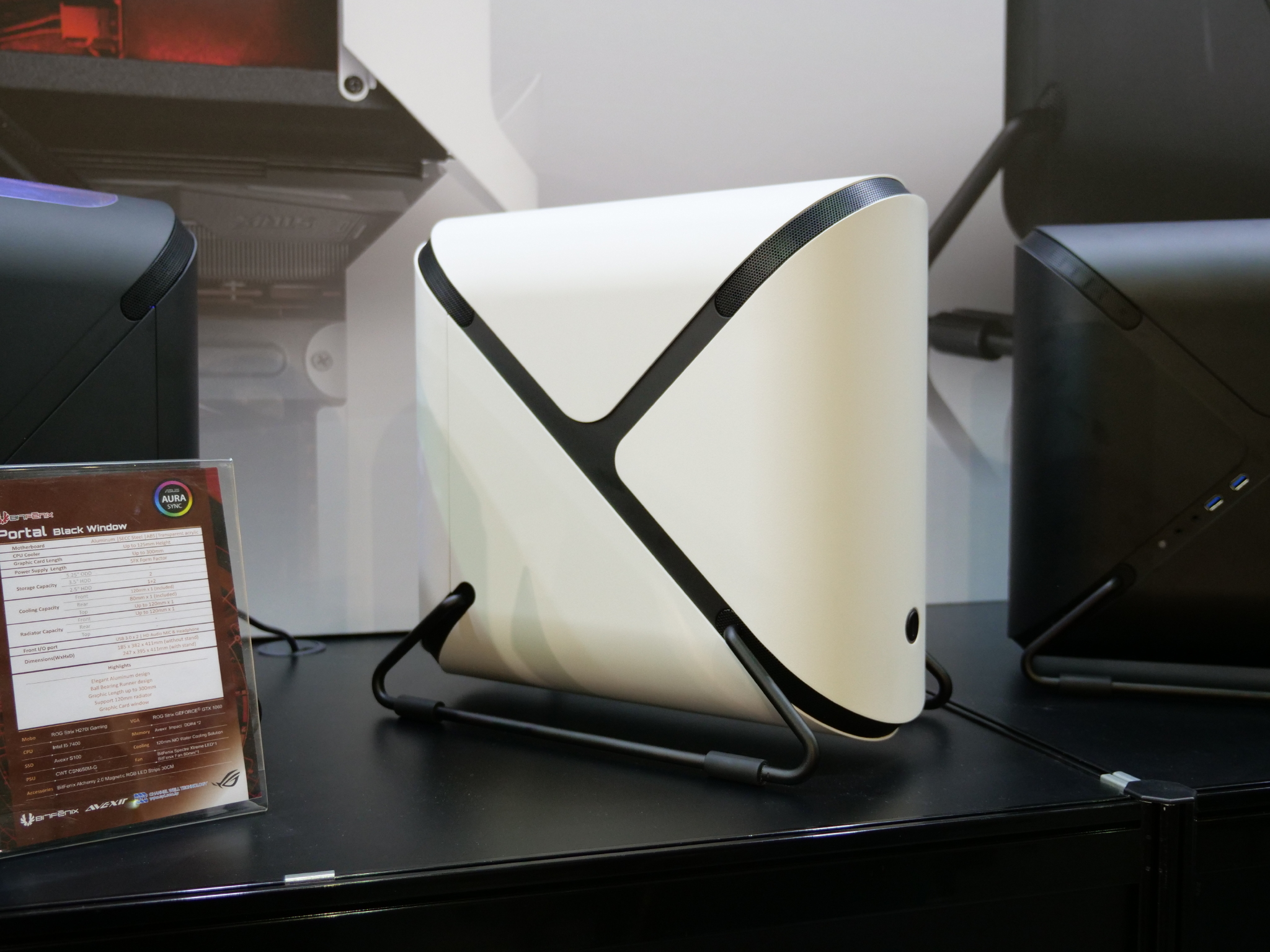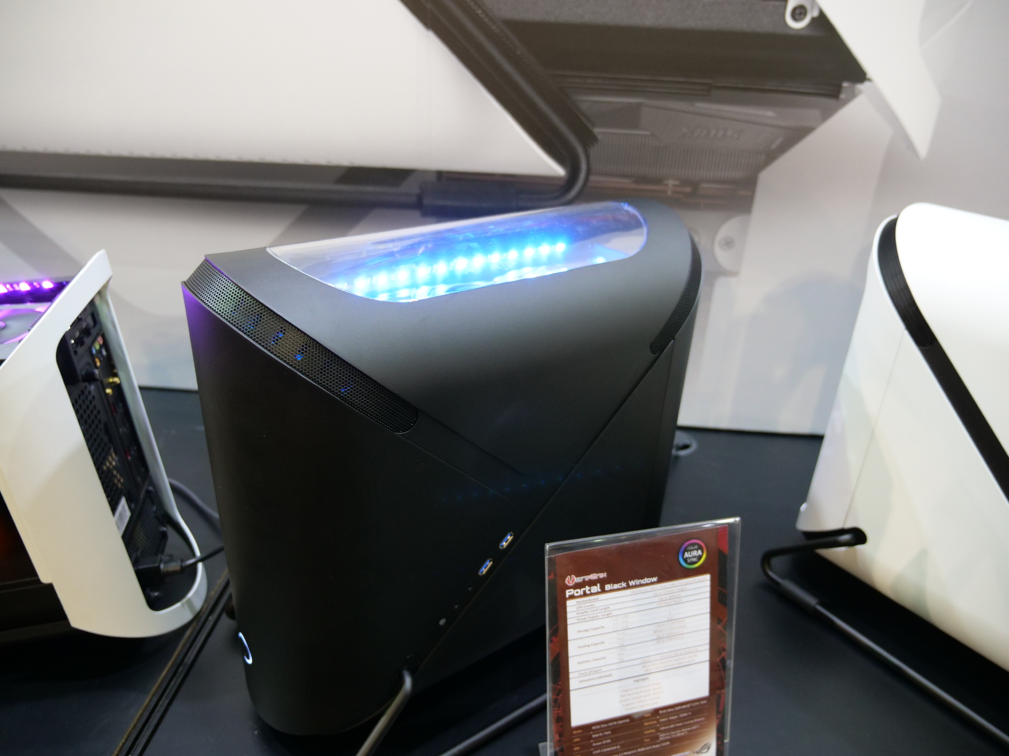 At Computex today, BitFenix began showing off the first public prototype for its new Enso PC case. The chassis is still in development but already looks functional enough and has plenty of RGB lighting, which is powered by ASUS Aura. We also got up close and personal with the BitFenix Portal, which looks very inspired by Valve's game of the same name.