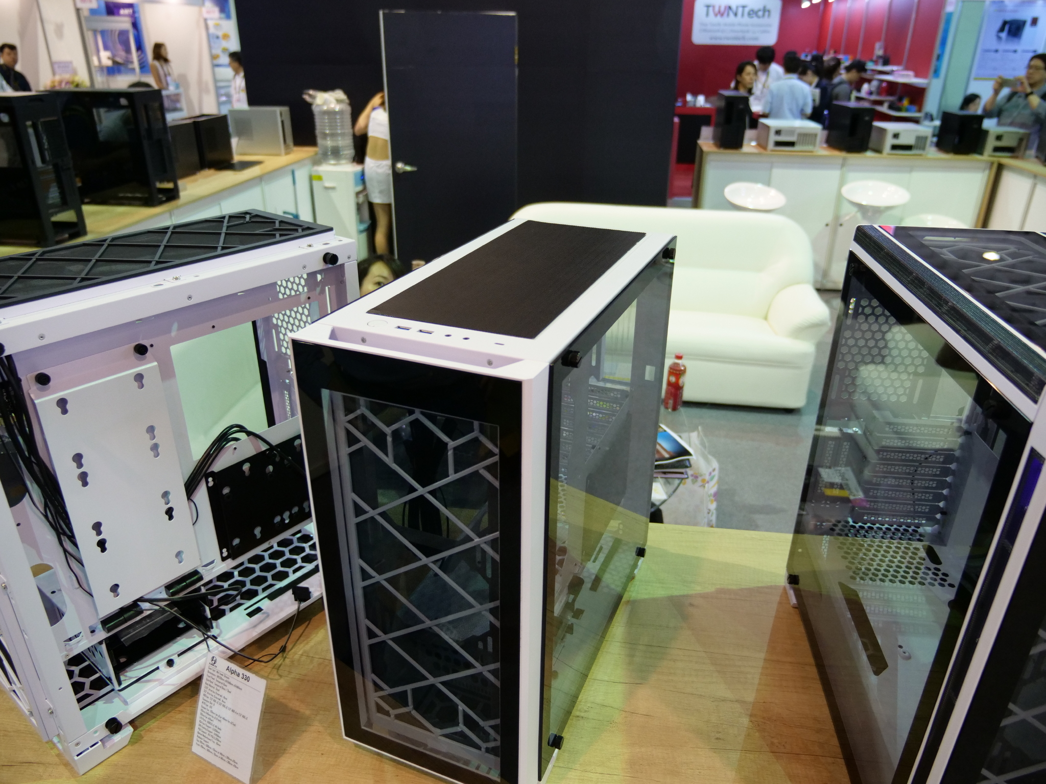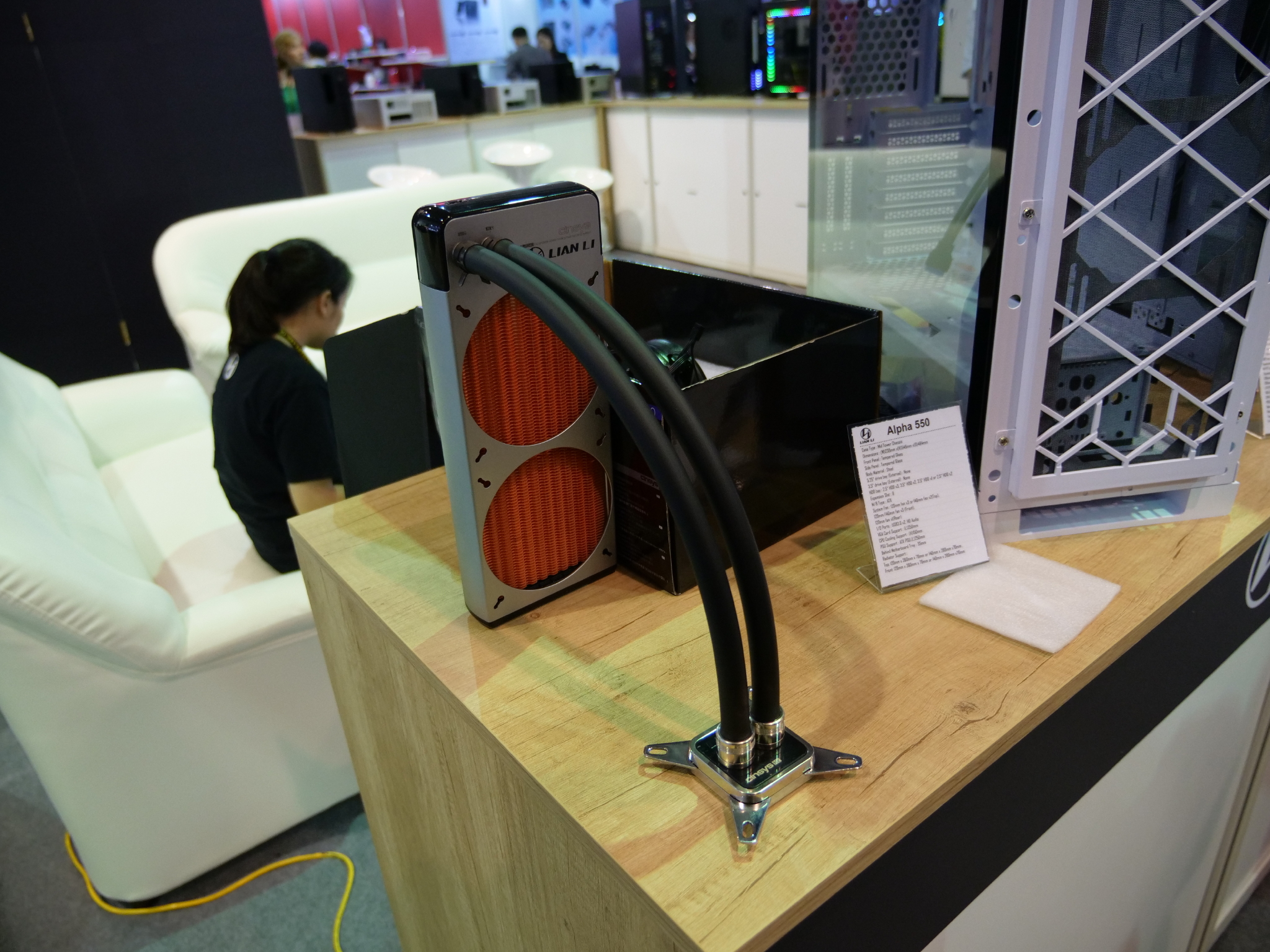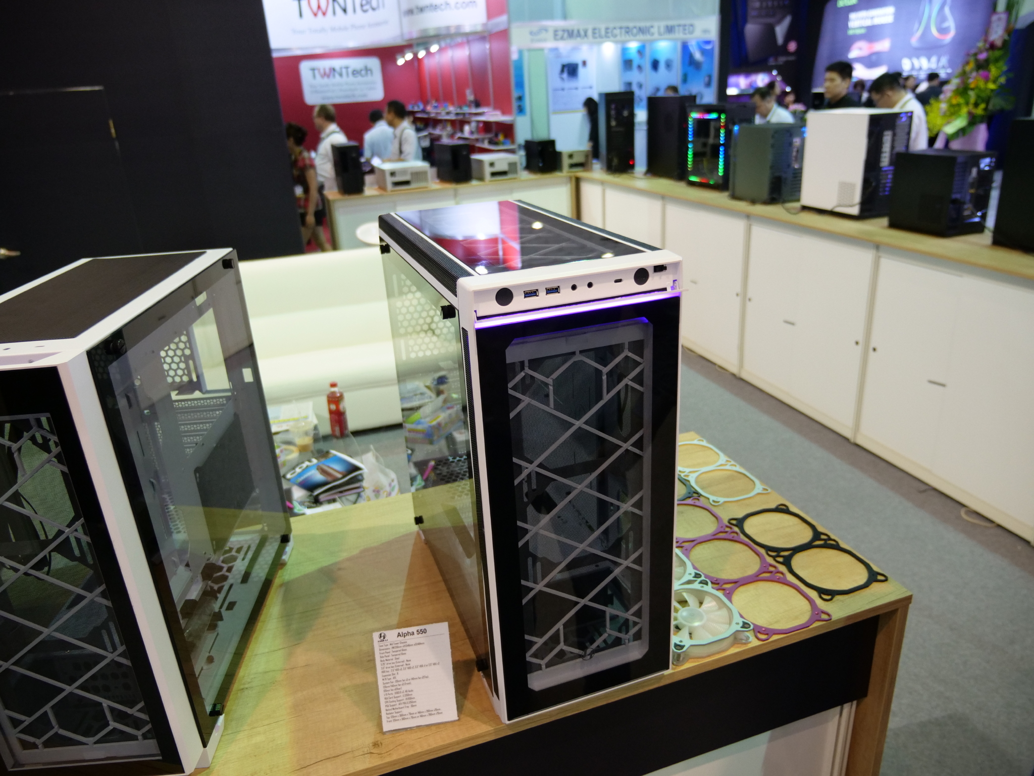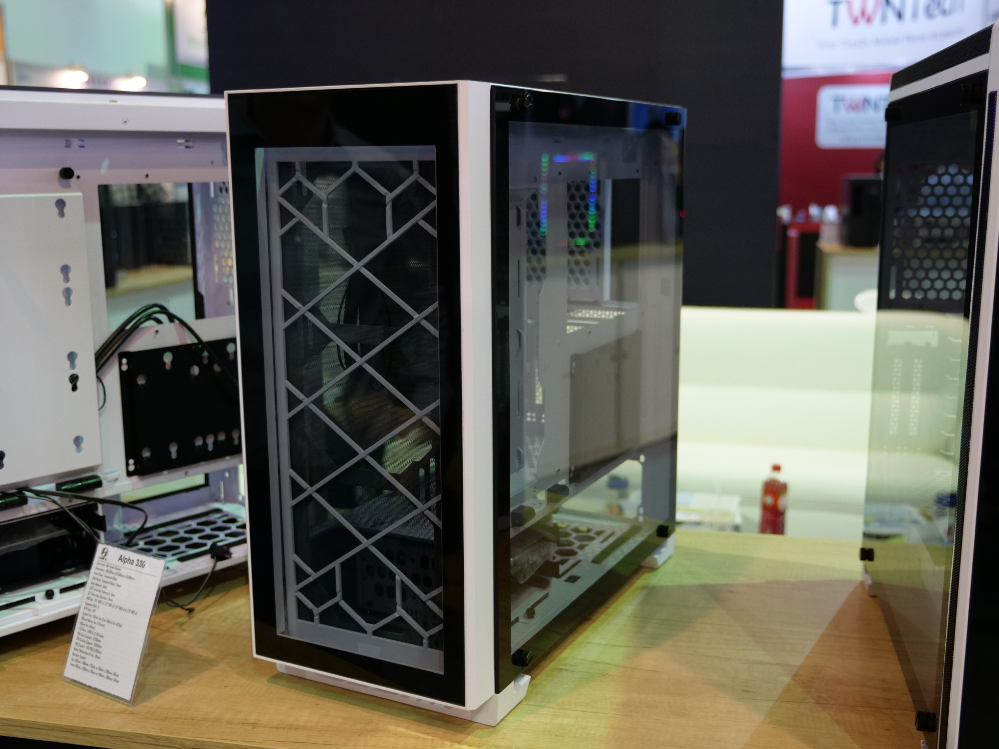For starters, Lian Li showed off its new Alpha 330 and Alpha 550 budget cases. These are being manufactured in Taiwan and are primarily made of steel and plastic, rather than aluminium. Both are mid-tower chassis with tempered glass panels at the front and side.